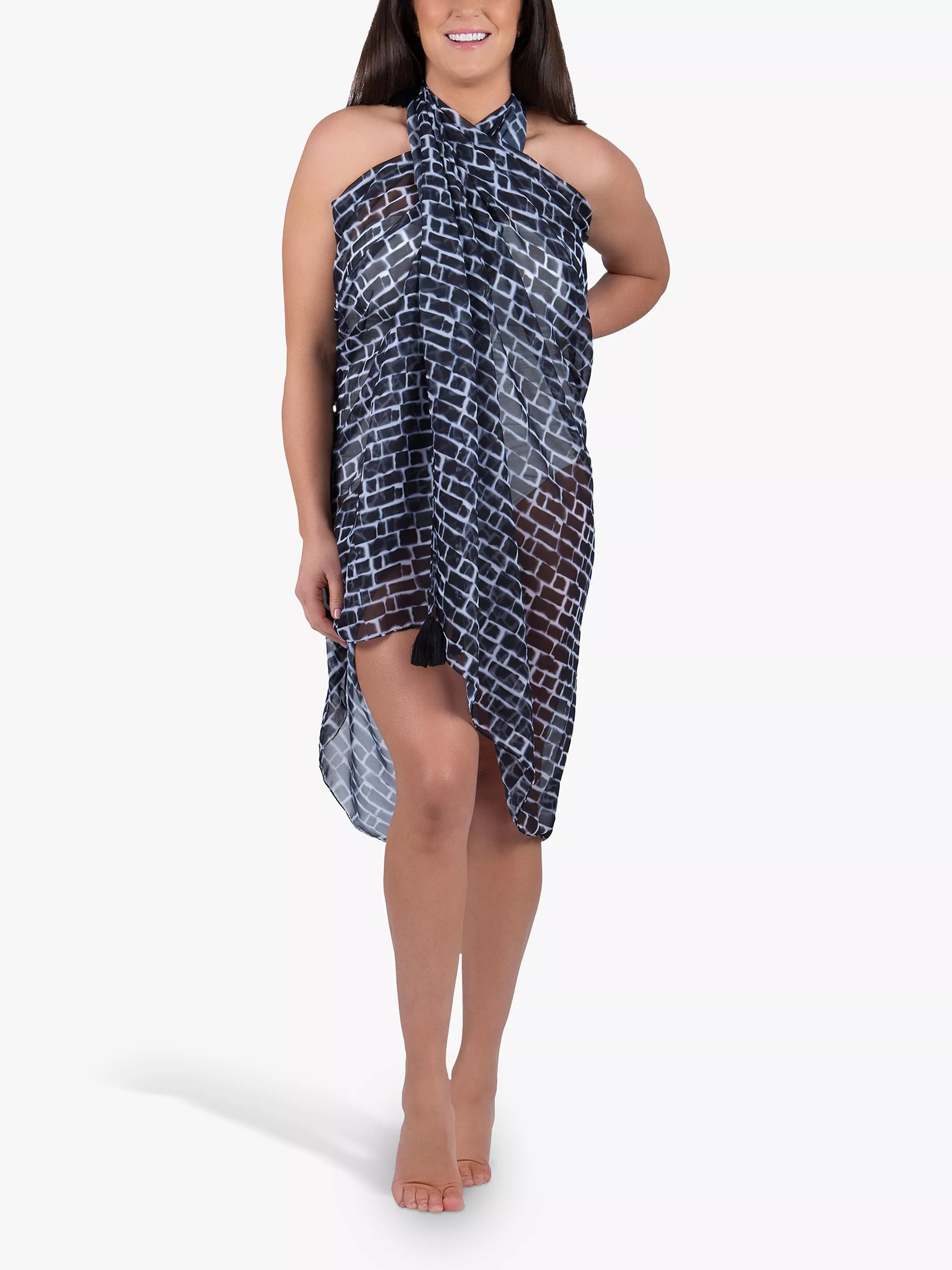 A lightweight, yet oversized chiffon sarong, designed in a contemporary tile print with tassel trims at the ends. Available in one size, it's easy to tie and style as a cover-up when you're beach or poolside.