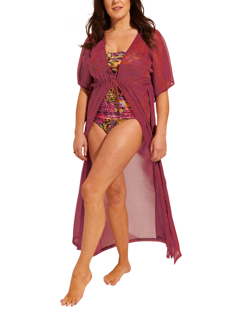 Crafted from lightweight chiffon in a shimmer finish, this maxi kaftan provides elegant and contemporary coverage over your swimwear. It skims the frame and falls to the ankles and has a drawcord at the waist which creates a gentle ripple when tied.