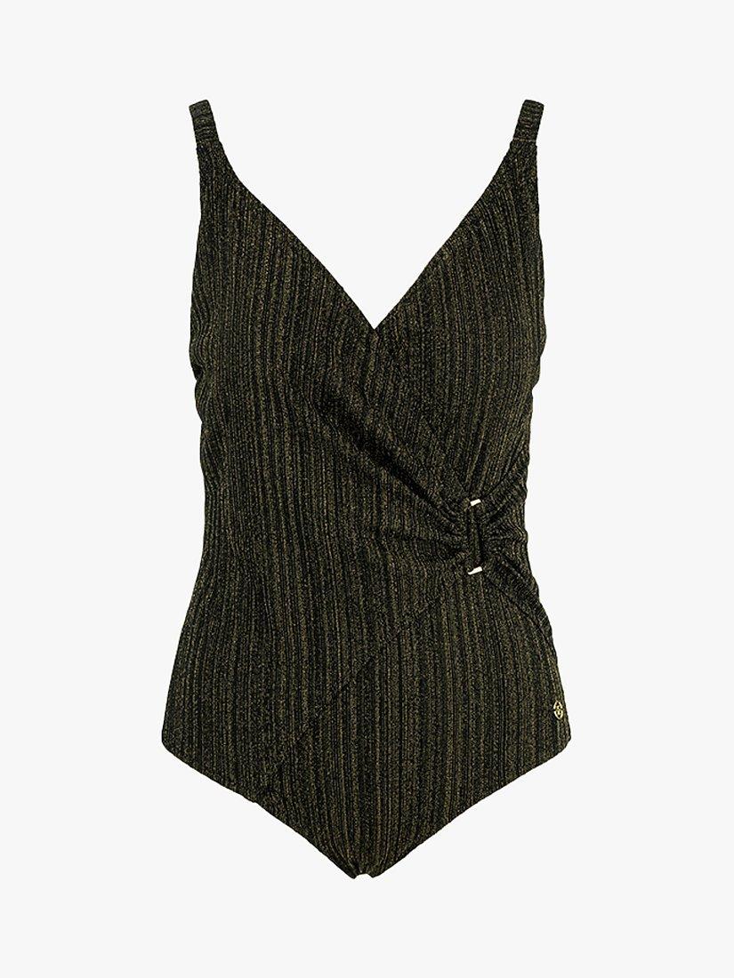 Seaspray's Athena swimsuit is detailed with a contemporary gold trim and gentle ripples to the front. This specially selected fabric provides a luxurious shimmer, promising to be equally as glamorous as your next holiday destination.