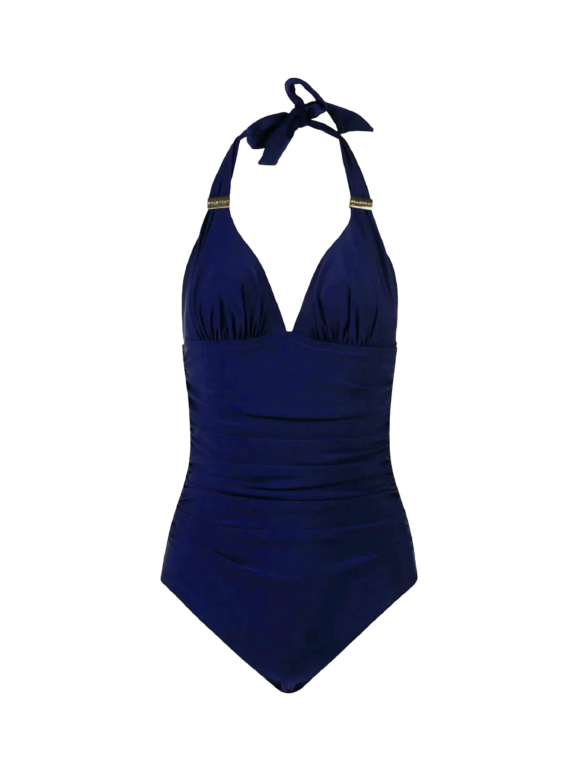 Stand out for all the right reasons in the Audrey hourglass halter neck swimsuit. Cut to a long length and designed with gold trim details and an adjustable halter neck strap.