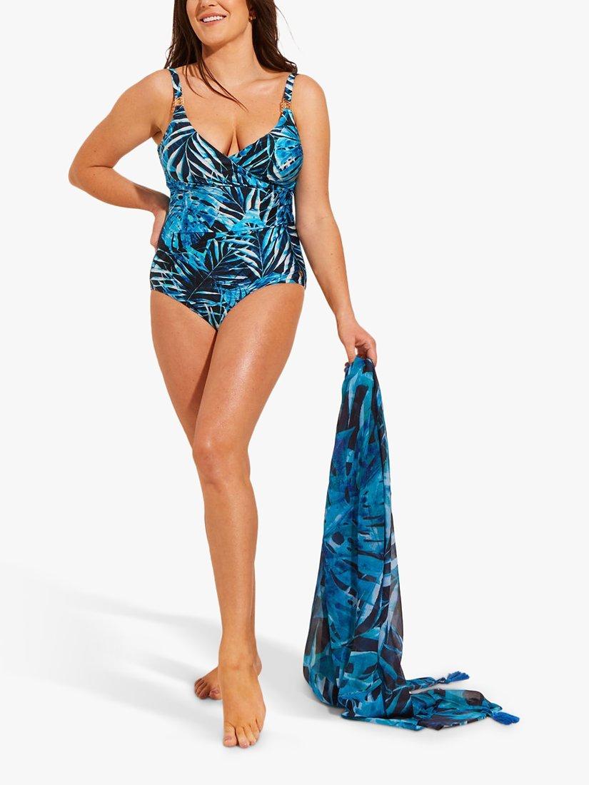 A classic and elegant long-length swimsuit in a bold, tropical print. It's designed with tummy control technology that shapes and contours for a flattering fit and it has adjustable straps complete with gold metal trims. A perfect poolside look.