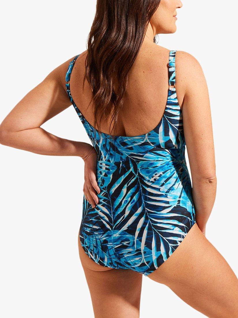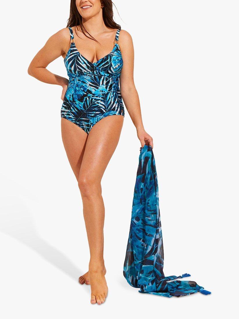 A classic and elegant regular-length swimsuit in a bold, tropical print. It's designed with tummy control technology that shapes and contours for a flattering fit and it has adjustable straps complete with gold metal trims. A perfect poolside look.