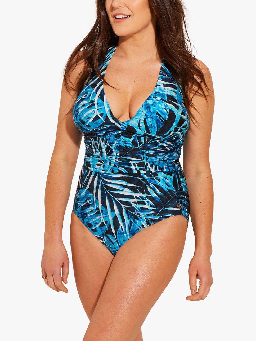 The Bora Bora halter neck swimsuit in this alluring tropical blue palm print is available in two lengths to flatter the frame, featuring Seaspray's special tummy control technology. The fabulous halter neck shape has an adjustable tie neck strap so you can find your perfect fit. Pair with the matching beautiful Bora Bora pareo to make layering a breeze.
