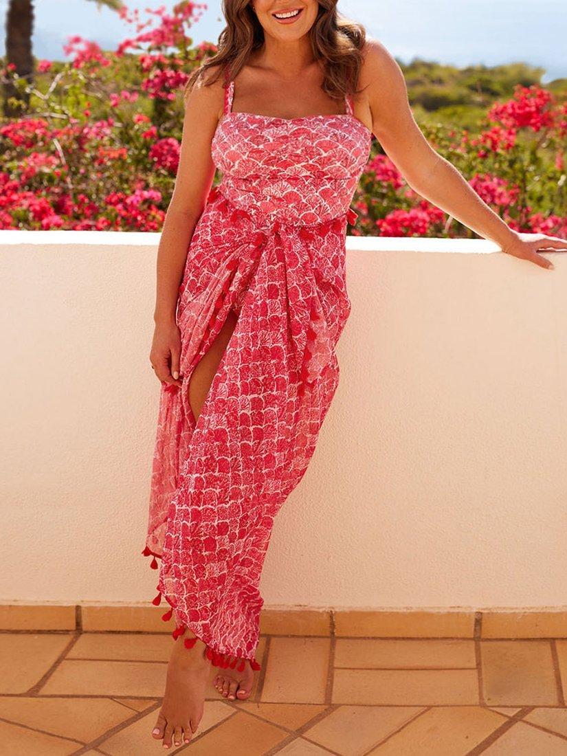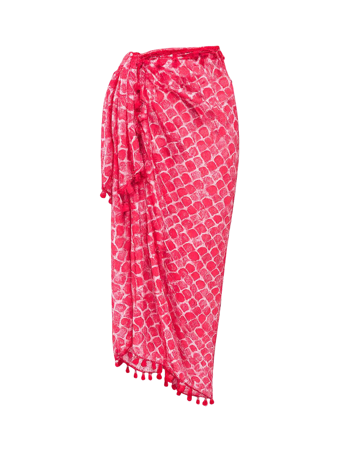 A pareo featuring Grecian shell-inspired accents. Made from super soft chiffon with tassel trim detailing.