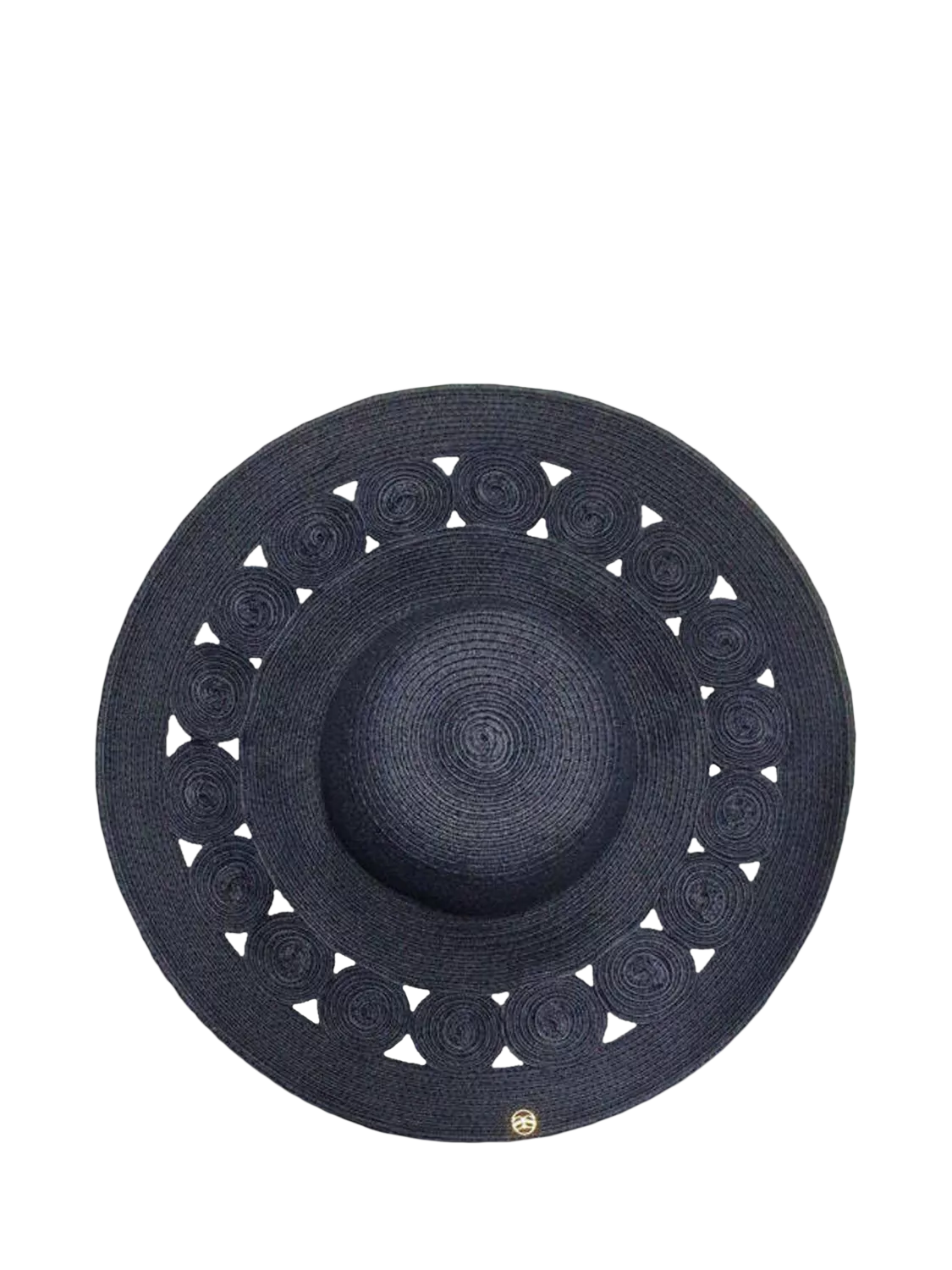 A glamorous cut-out detail hat. Finished with a metal decal touch.
