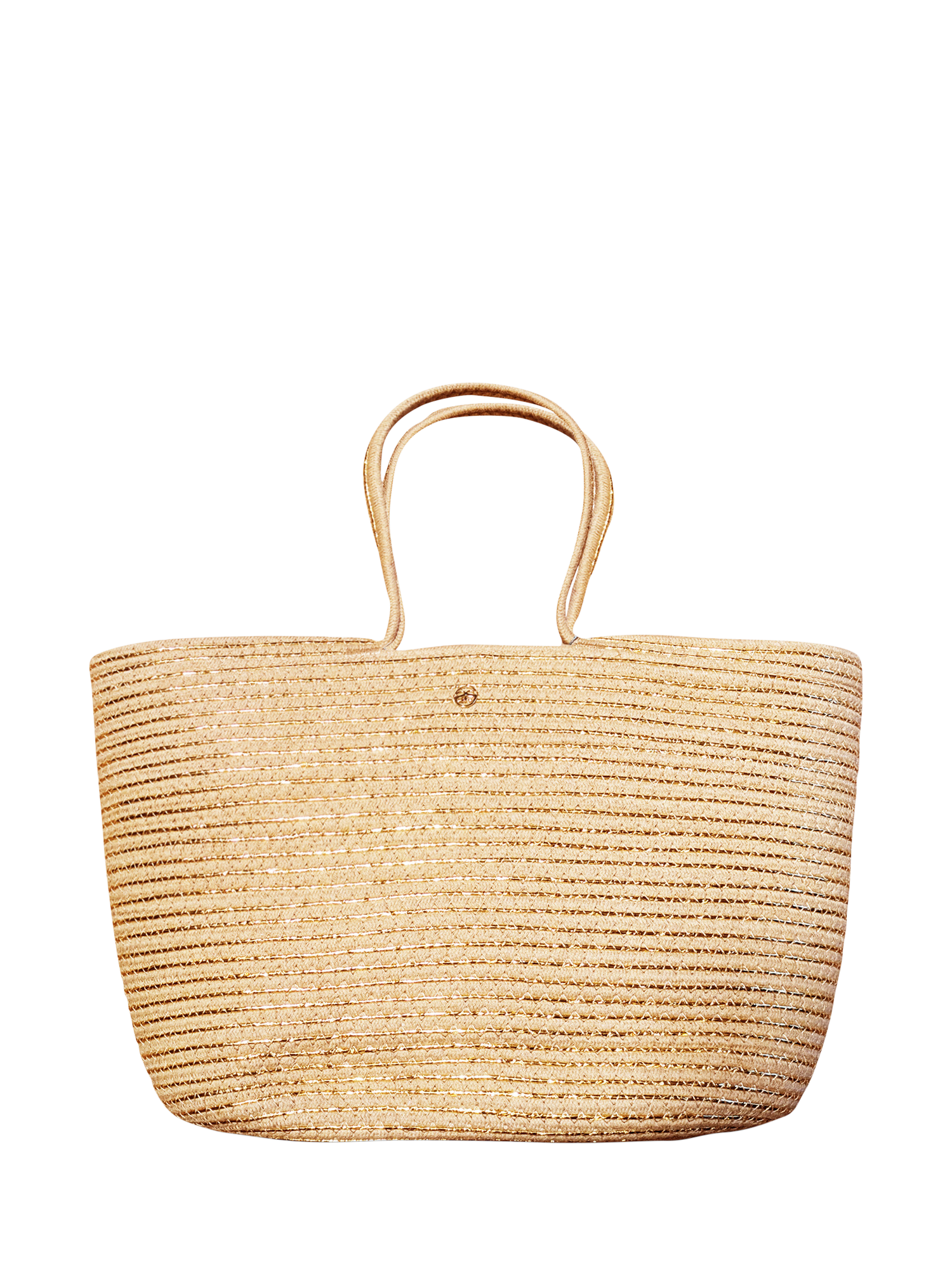 Crafted from luxury metallic fibre, this bag’s sleek silhouette and simple colourway is sure to add a sophisticated finishing touch to any holiday look. The design is complemented with Seaspray's signature gold branding, perfect for packing all your supplies for a day at the beach whilst looking stylish too.