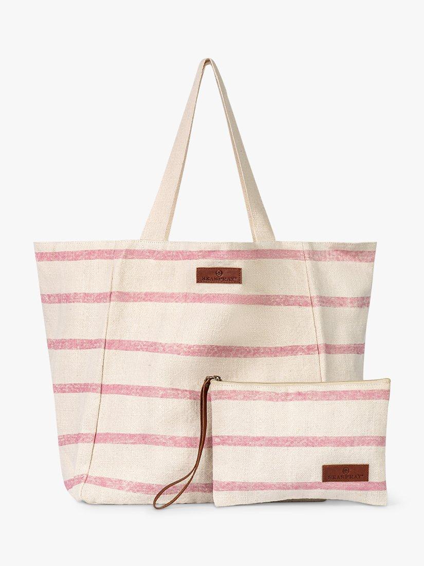 This chic beach bag is ideal for transporting your supplies. Made from jute with a cotton lining, inside zip pocket and magnetic fastening. Includes a matching smaller zip-up bag.