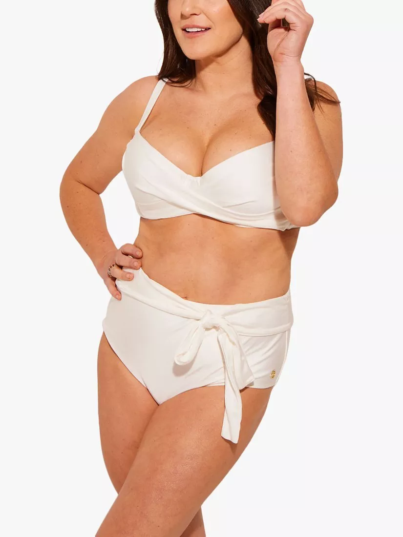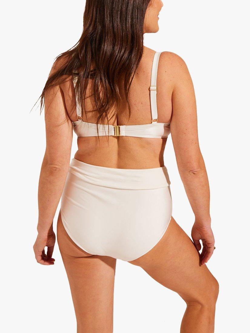 A flattering bikini top with cup-sized underwiring, designed with gentle draping and a simple clasp fastening.