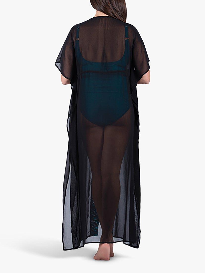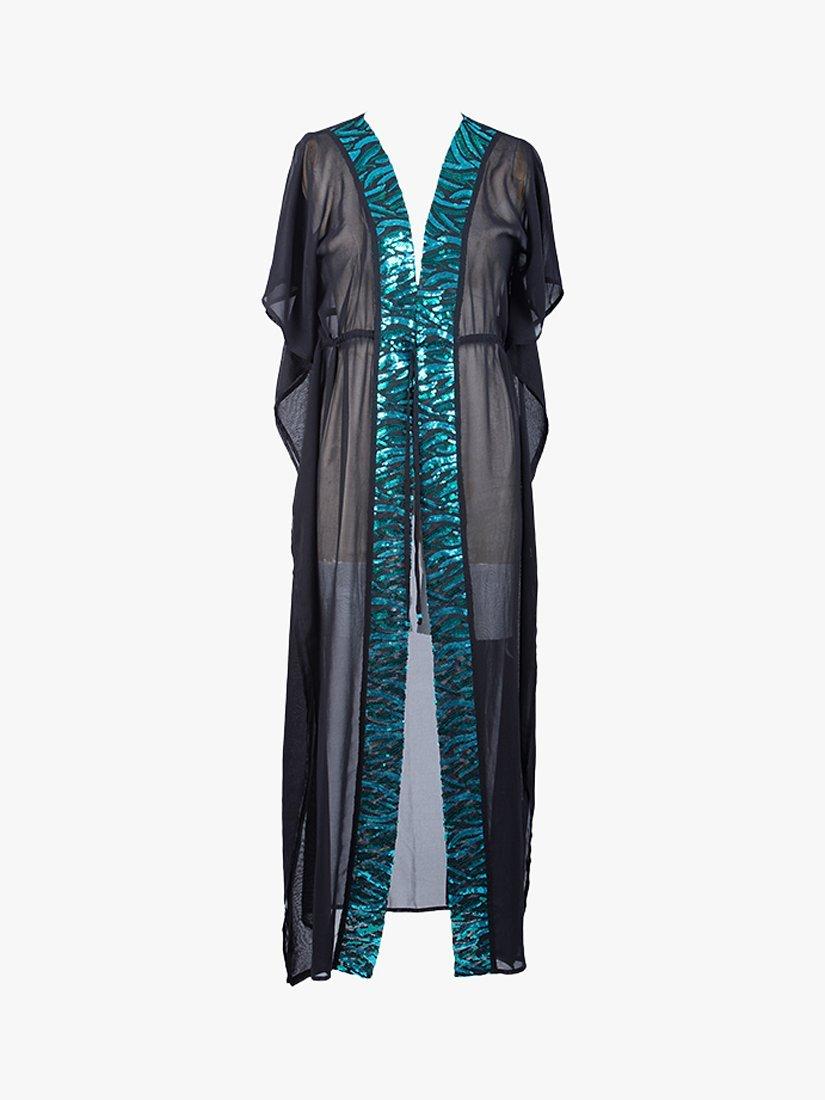 A flowy, maxi kaftan made from soft chiffon and decorated with a striking sequin trim. Wrap yourself up in this statement piece when you head from beach to bar, and team it with matching swimwear for an elevated look.