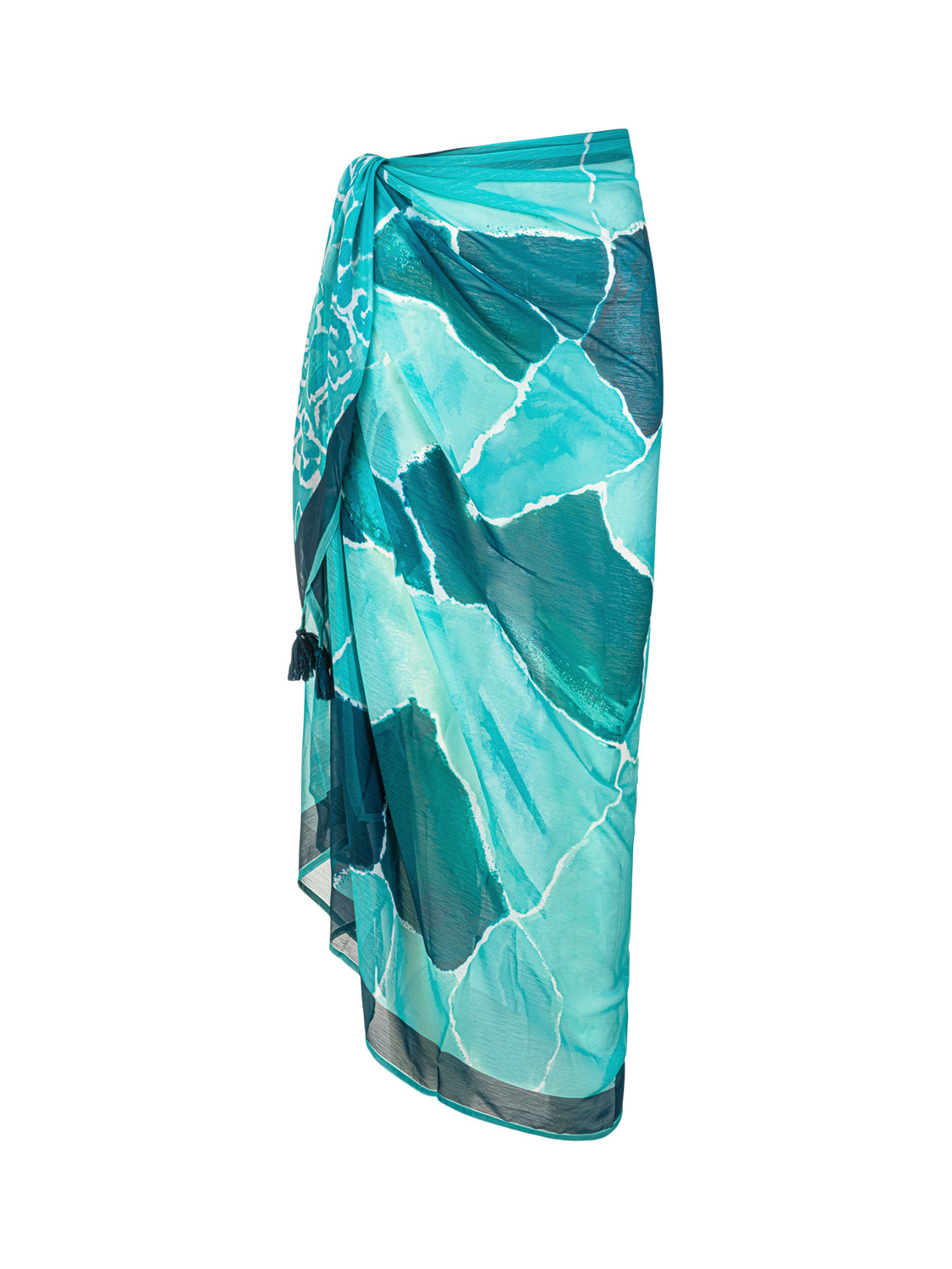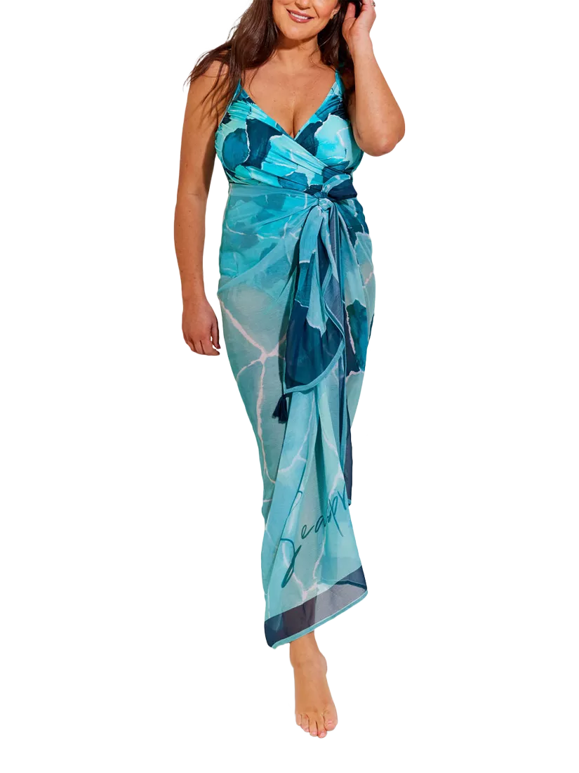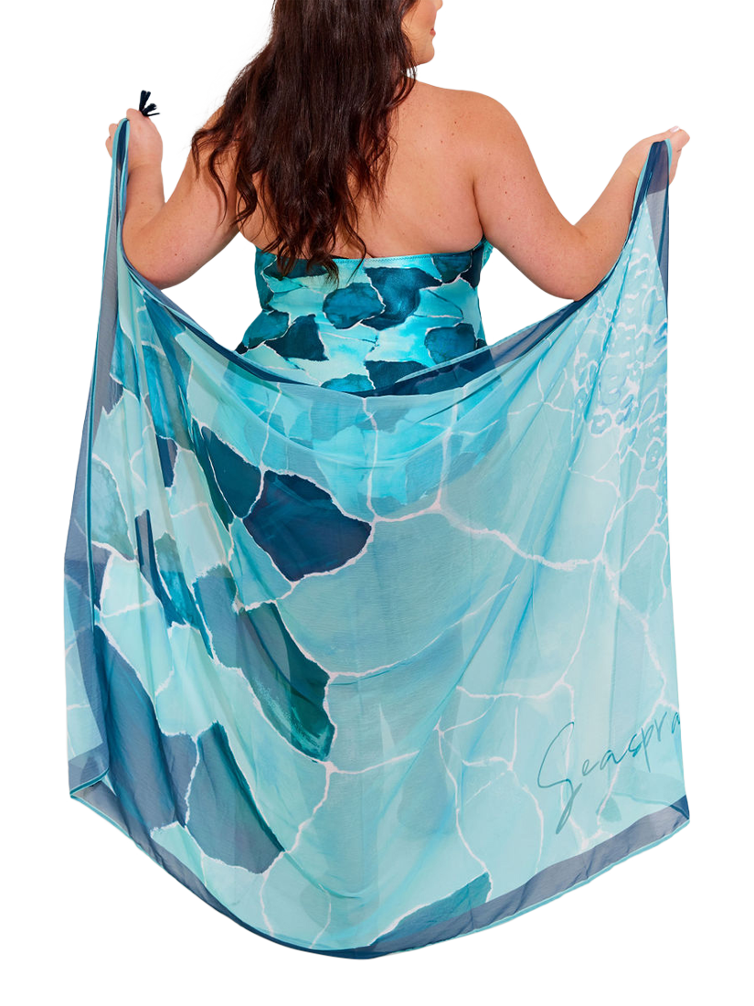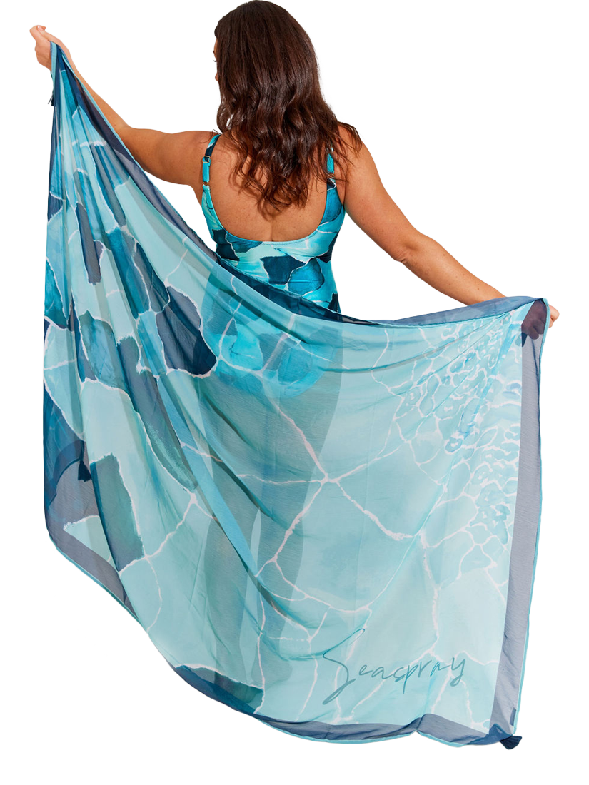 This beautiful blue and aqua ocean tile print pareo will brighten any summer holiday look.
