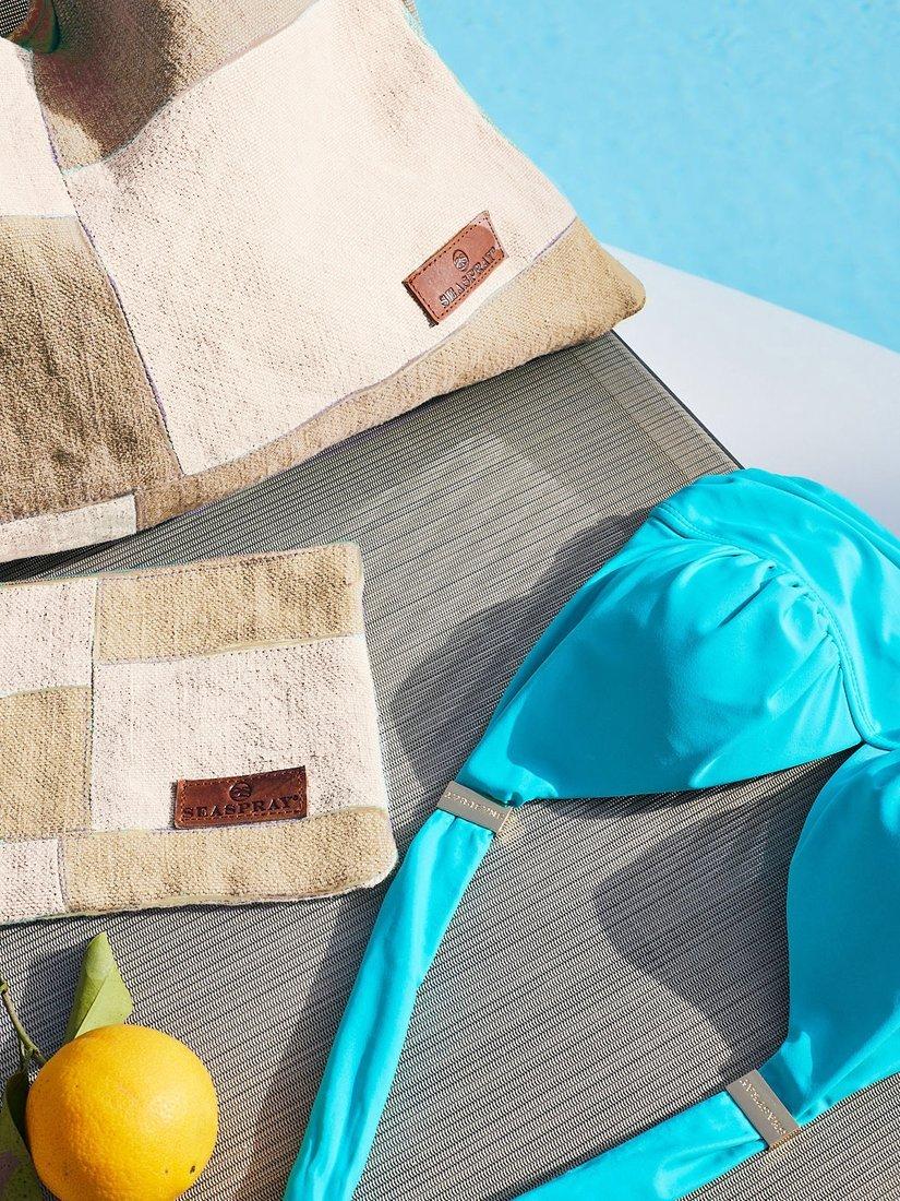 The perfect bag for beach days, shopping or lunch with friends. Made from natural jute fabric with 100% cotton lining and a magnetic fastening. For evening, switch to the separate purse with its vegan leather strap and zip fastening, just the right size for your mobile phone, lipstick and wallet.