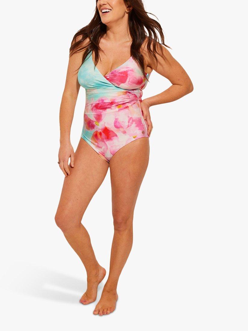 In a delicate floral print that's perfect for summer, this longer-length swimsuit is designed with soft draping detail at the front and Seaspray's tummy control technology that provides supportive shaping. It has adjustable straps and contemporary gold metal trims.