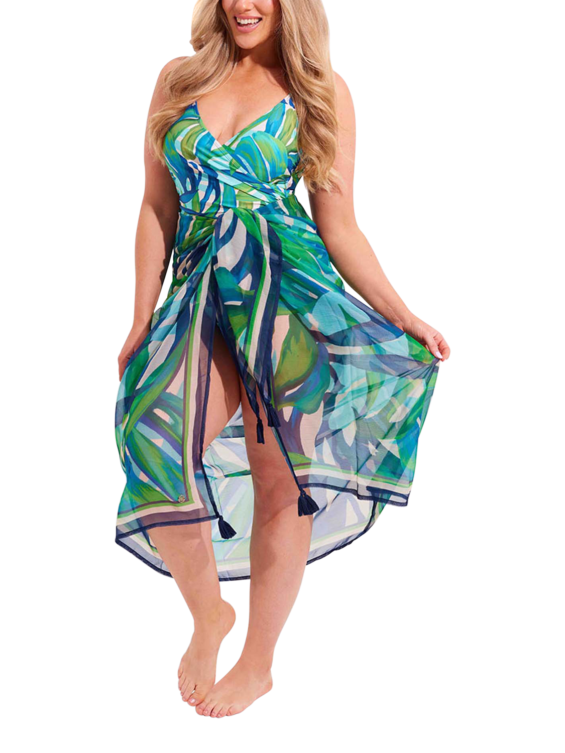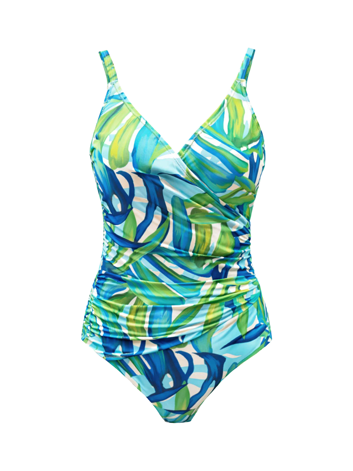This flattering wrapped styling is one of Seaspray's bestselling shapes. The fabric drapes asymmetrically, creating a sophisticated jungle-inspired silhouette.