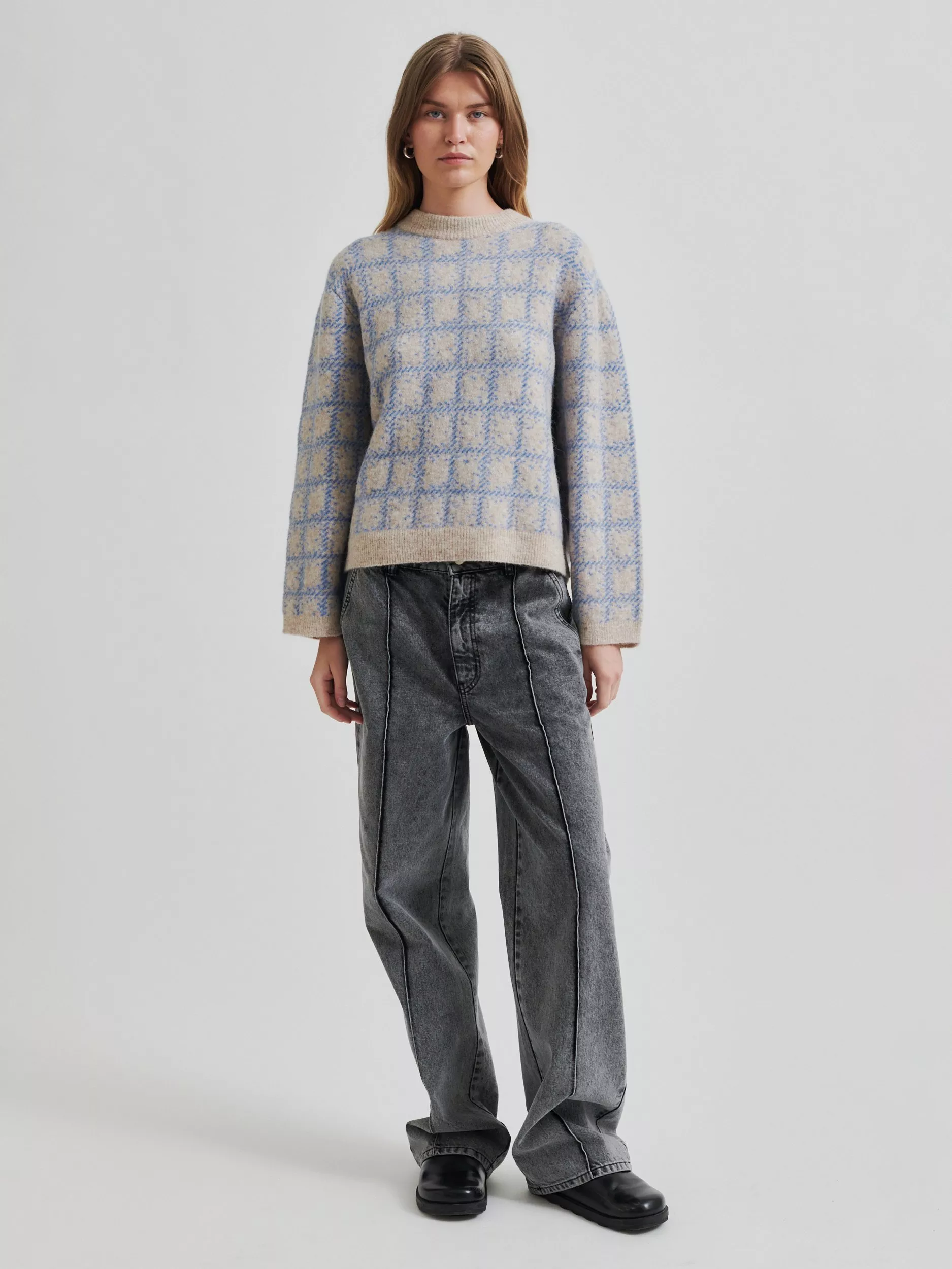 The pullover is made in a soft and stretchy alpaca-wool blend with all-over knitted pattern. Featuring a round neck and dropped shoulders with long, wide sleeves. Ribbed neck, cuffs and bottom hem. Loose and wide fit that is comfy to wear.