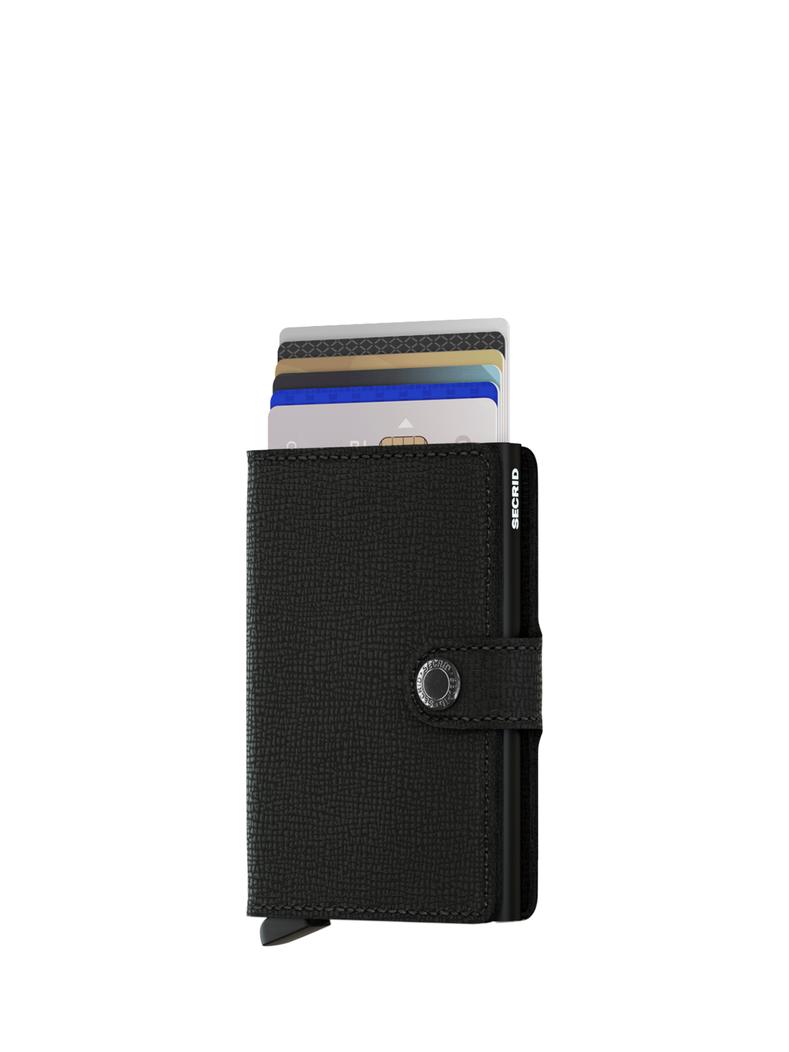The Miniwallet from Secrid offers a perfect balance of compact size and generous storage capacity. Its streamlined design ensures it fits comfortably in any pocket, while still accommodating a number of cards, banknotes, and receipts. The wallet's core is a patented aluminium Cardprotector, which, with a simple motion, allows your cards to slide out for immediate use while also shielding them from bending, breaking, and unwanted wireless communication.