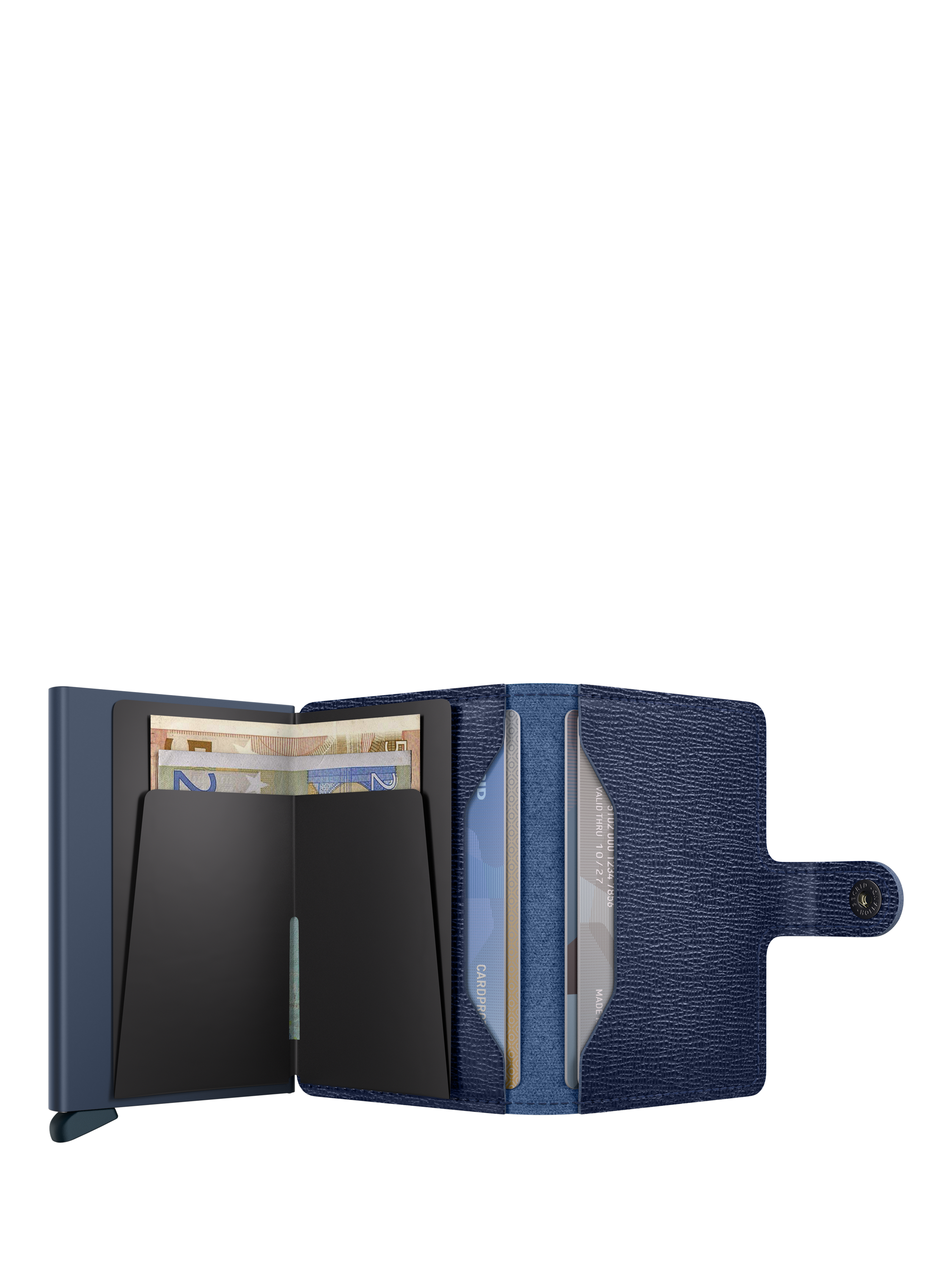 The Miniwallet from Secrid offers a perfect balance of compact size and generous storage capacity. Its streamlined design ensures it fits comfortably in any pocket, while still accommodating a number of cards, banknotes, and receipts. The wallet's core is a patented aluminium Cardprotector, which, with a simple motion, allows your cards to slide out for immediate use while also shielding them from bending, breaking, and unwanted wireless communication.