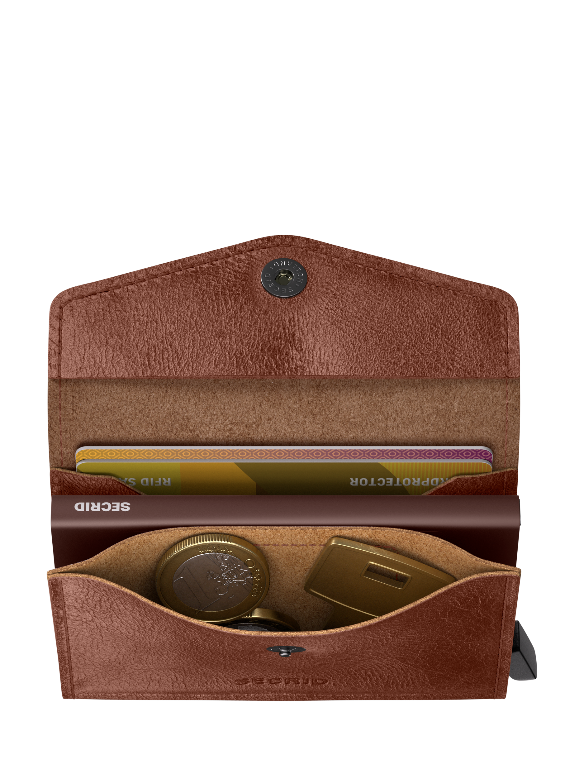 The Envelope Wallet from Secrid offers a perfect balance of compact size and generous storage capacity. Its streamlined design ensures it fits comfortably in any pocket, while still accommodating a number of cards, banknotes, receipts, coins and small essentials. The wallet's core is a patented aluminium Cardprotector, which, with a simple motion, allows your cards to slide out for immediate use while also shielding them from bending, breaking, and unwanted wireless communication.