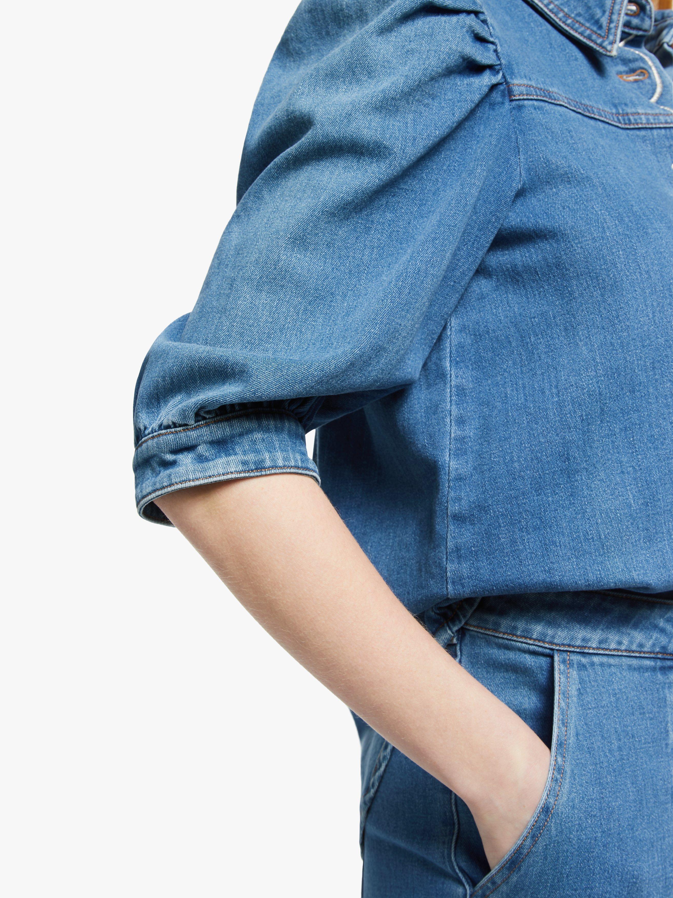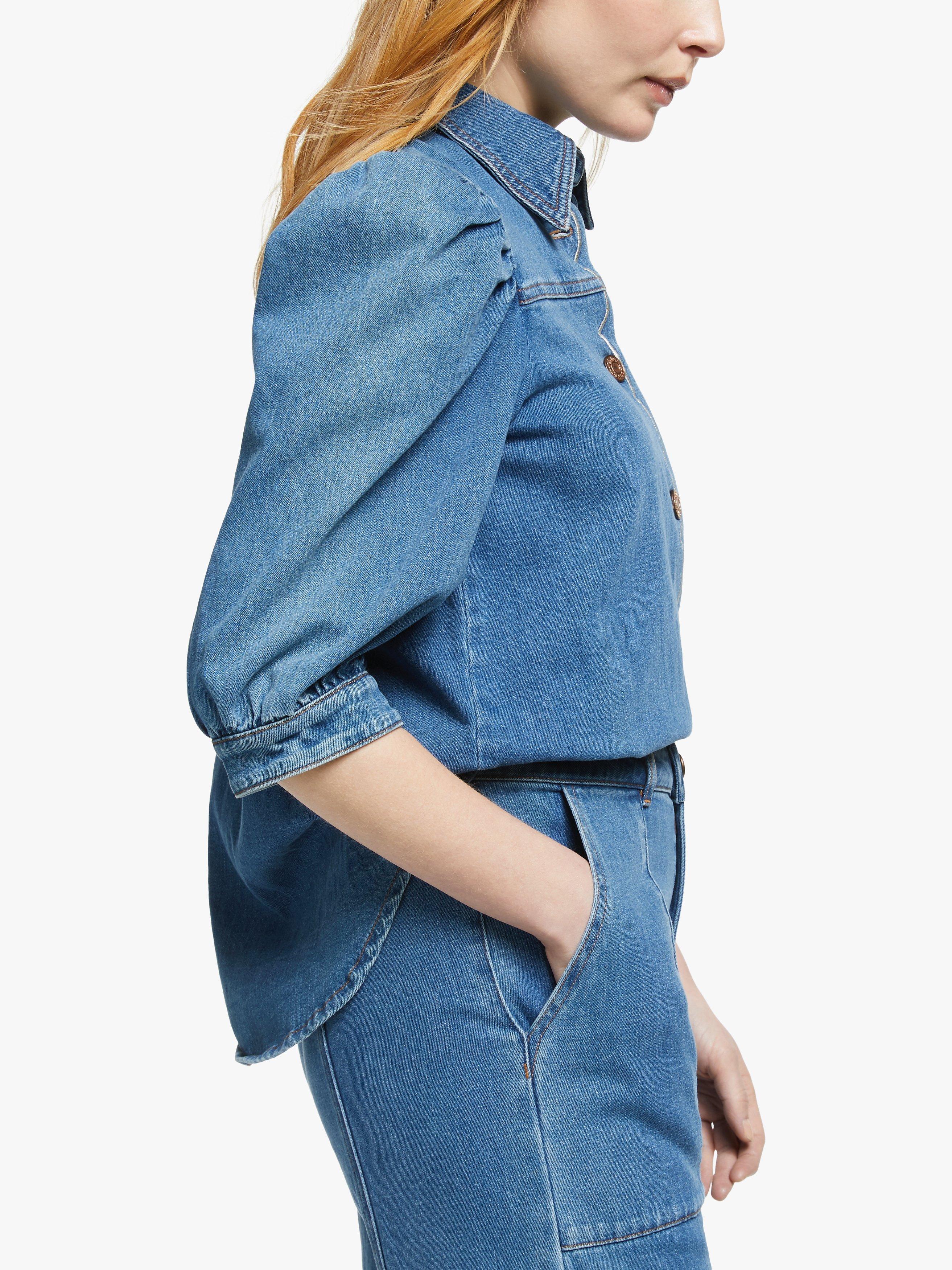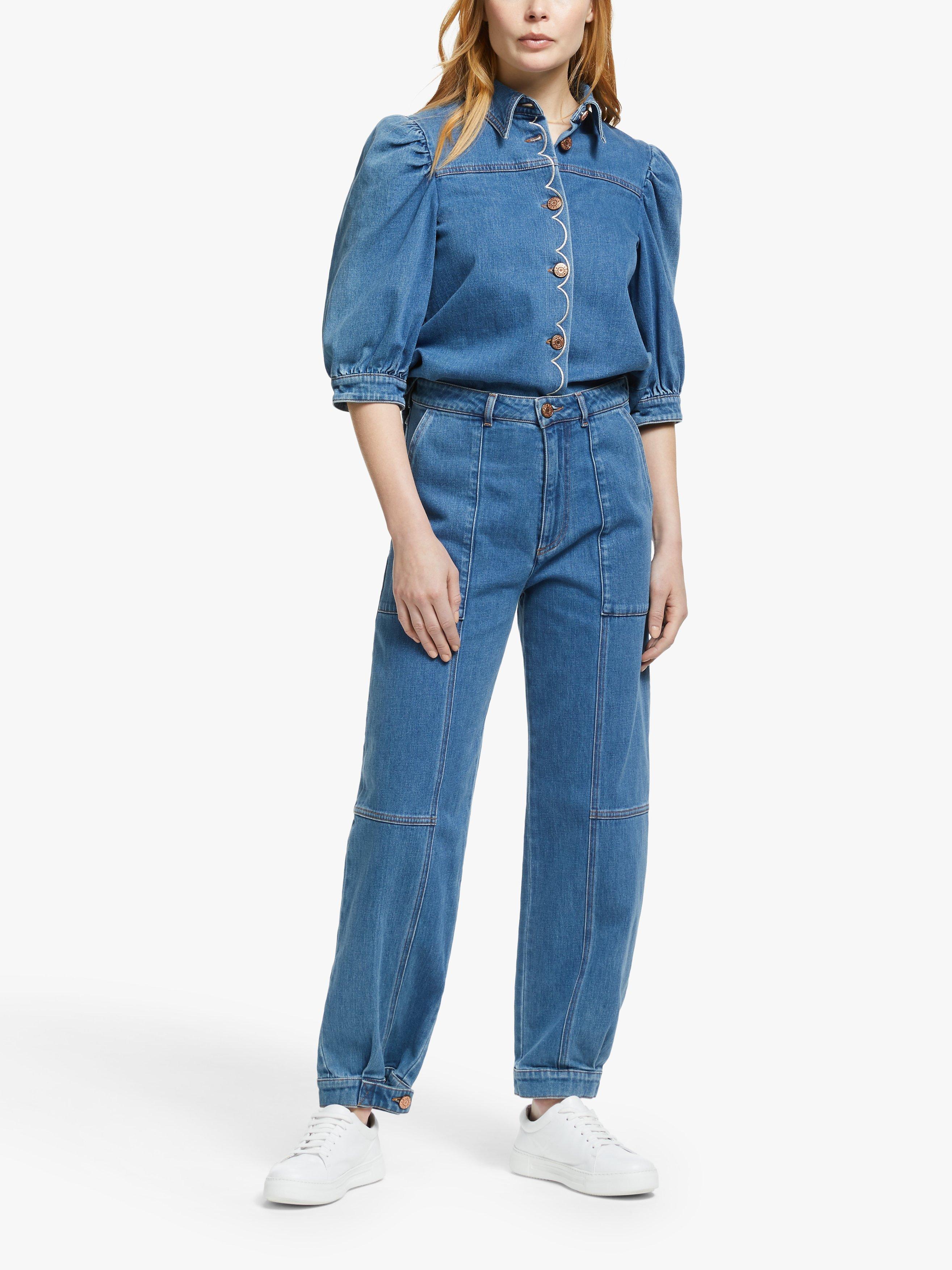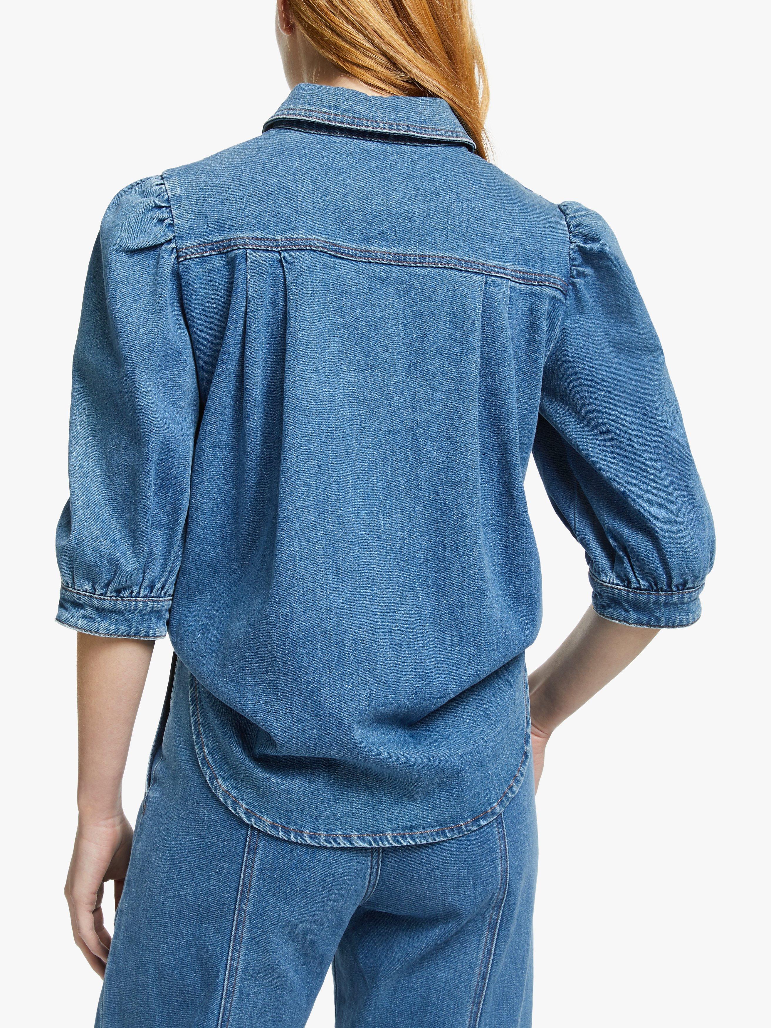 A reworking of the denim shirt, See By Chloé lends their playful and feminine touches to this effortless piece. It's gently fitted with puff sleeves that gather into cuffs for a pretty blouson shape and has a button through front, topped with contrast scalloped embroidery. Go for double denim and tuck into a high-waisted cropped pair of jeans.
