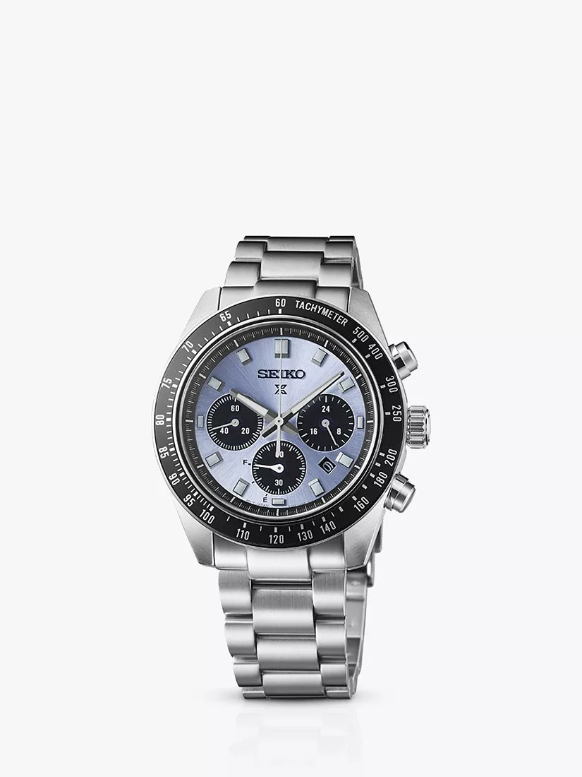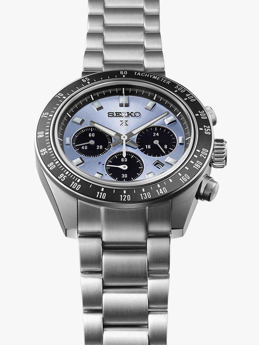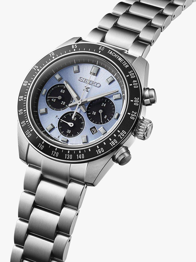 SeikoSSC935P1 Men's Prospex Crystal Trophy Speedtimer Solar Chronograph Bracelet Strap Watch, Ice Blue/Silver