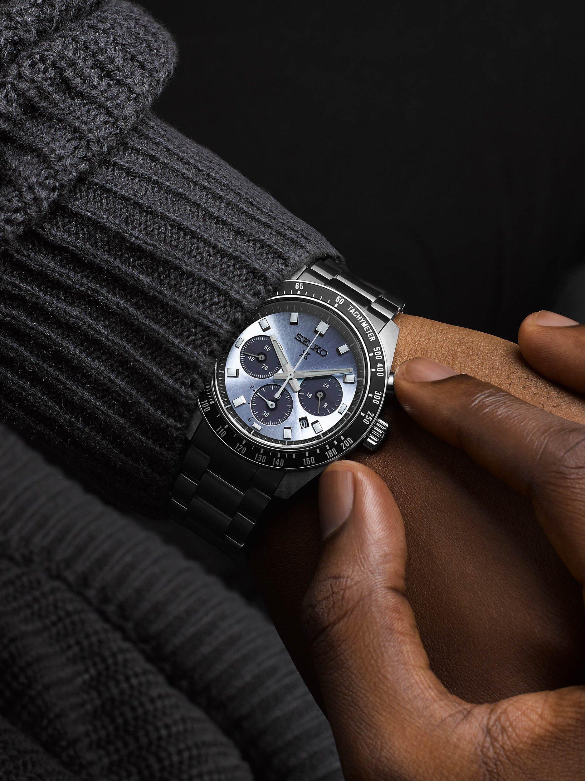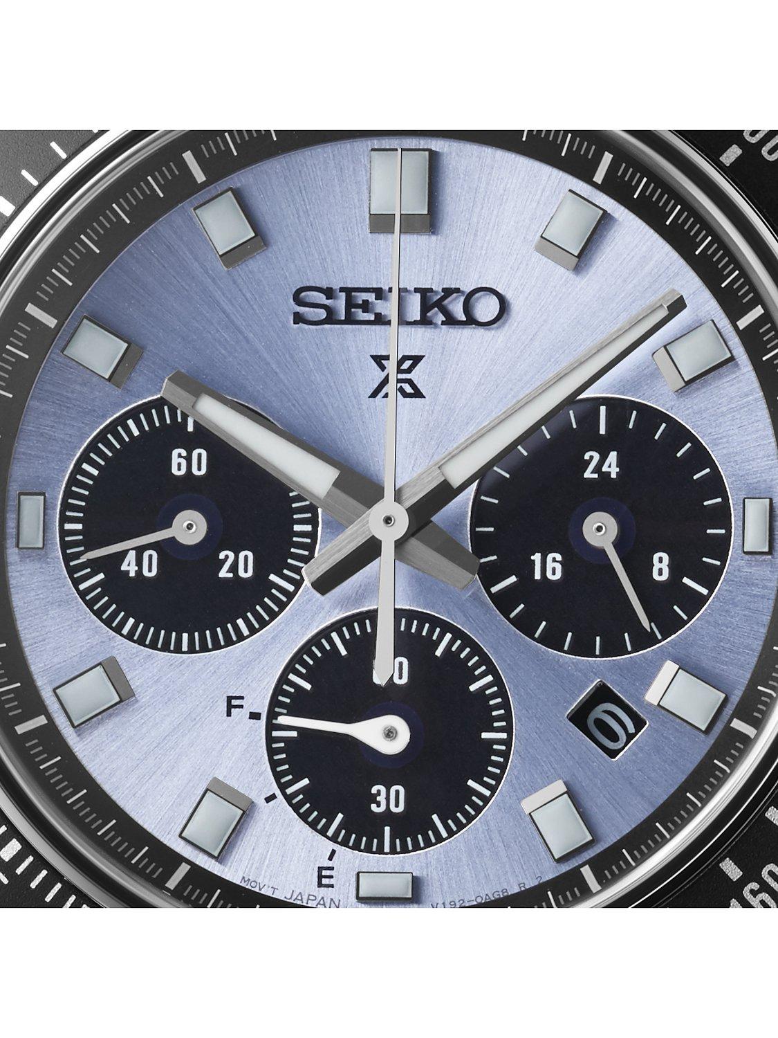 This solar-powered chronograph timepiece is from the Prospex Speedtimer watch collection which represents Seiko’s professional timekeeping heritage.