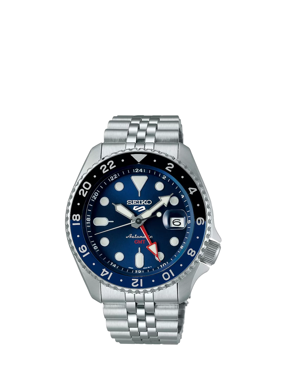 SeikoSSK003K1 Men's 5 Sports Blueberry GMT SKX Re-interpretation Automatic Day Date Bracelet Strap Watch, Silver/Blue