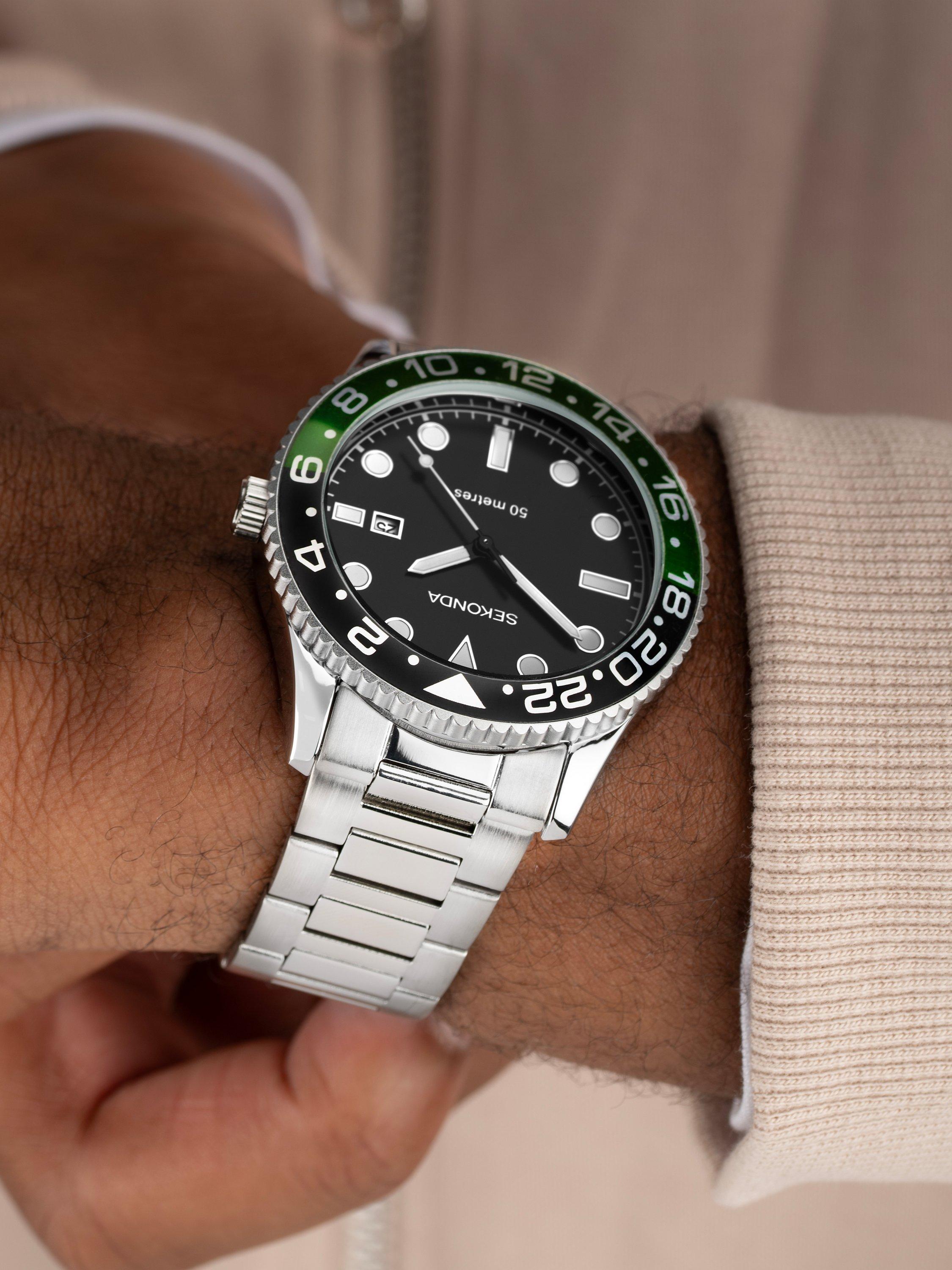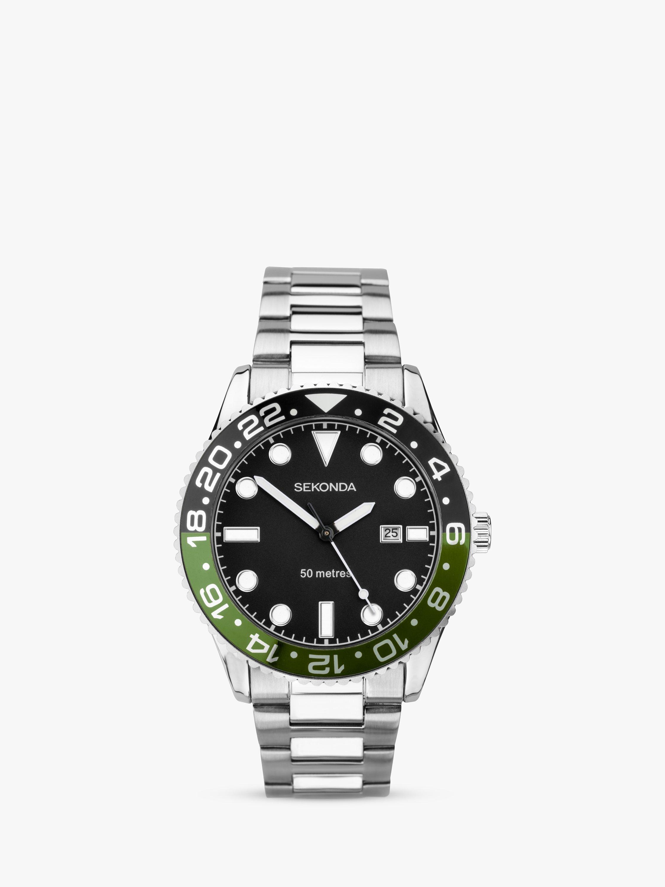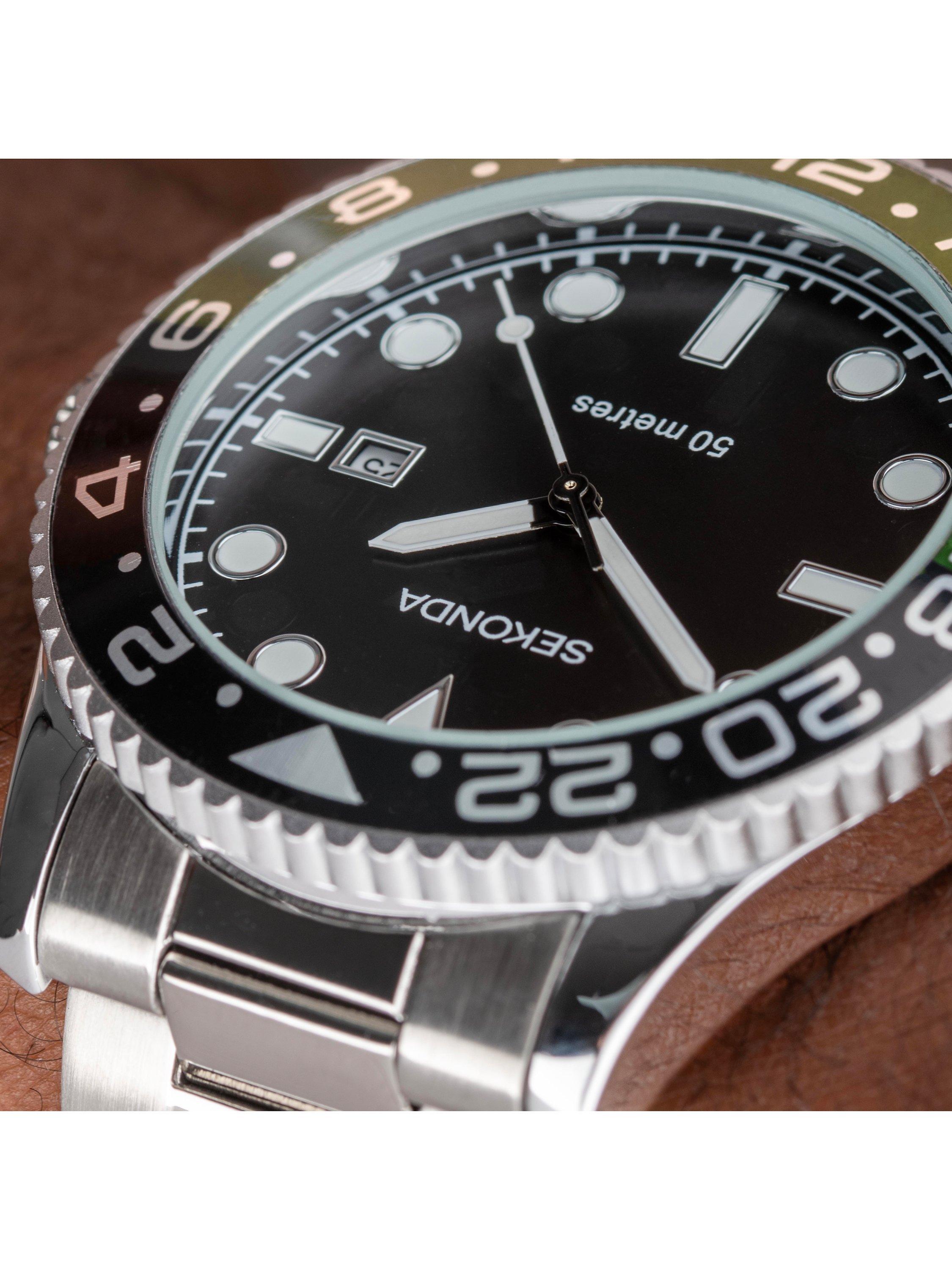 SekondaMen's Ocean Bracelet Strap Watch, Silver/Black