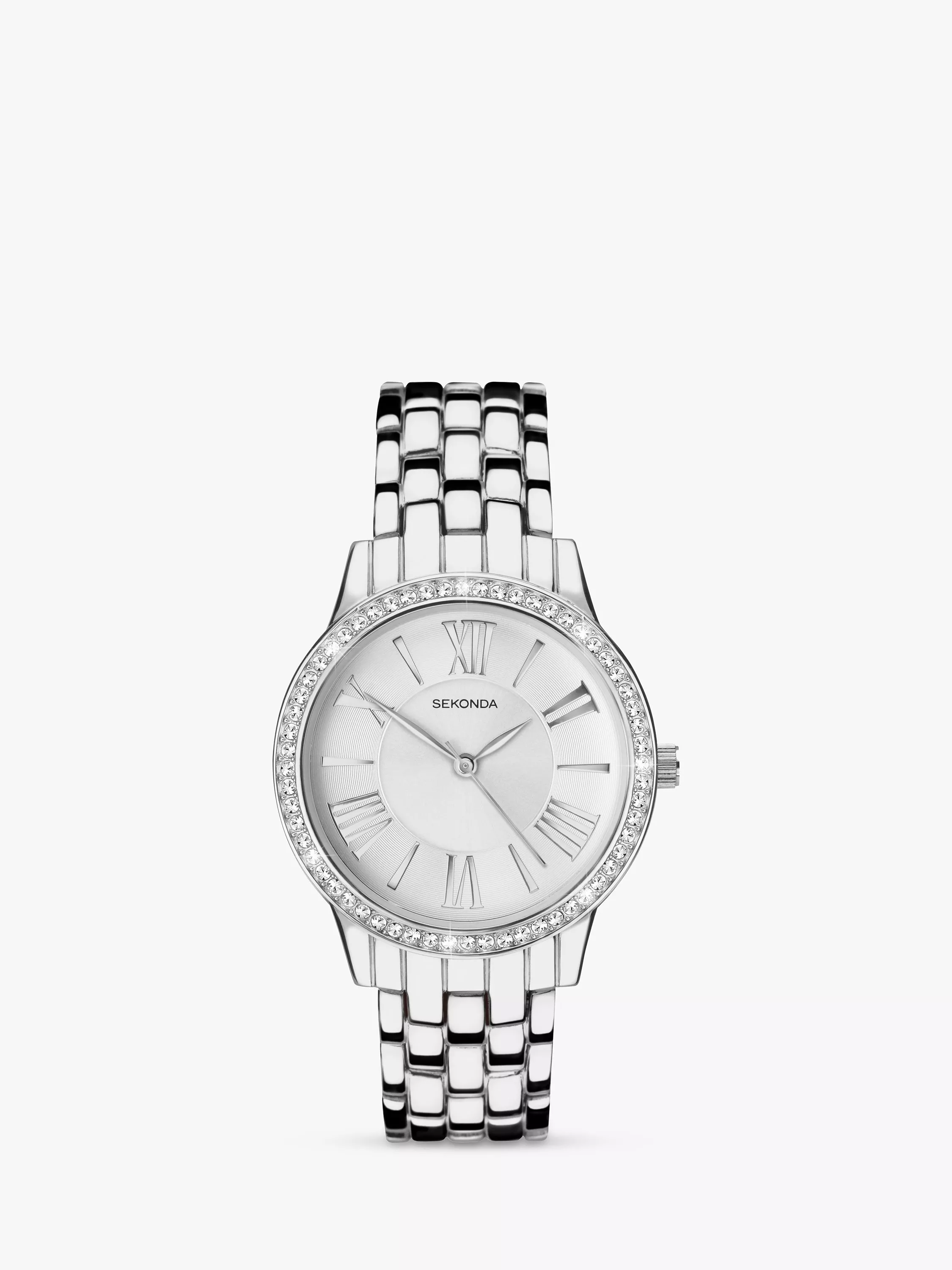 In keeping with the most dominant trends, this timepiece from Sekonda comes set in a rounded case with a cubic zirconia-set bezel and brings timeless charm to your look with traditional Roman numerals.