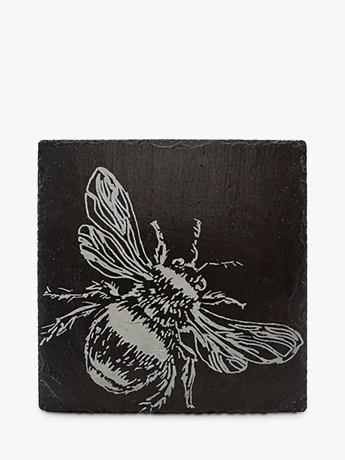 Beautiful handcrafted square slate coaster, made in the UK and laser-engraved with a bee design. Stylish, functional and giftable.