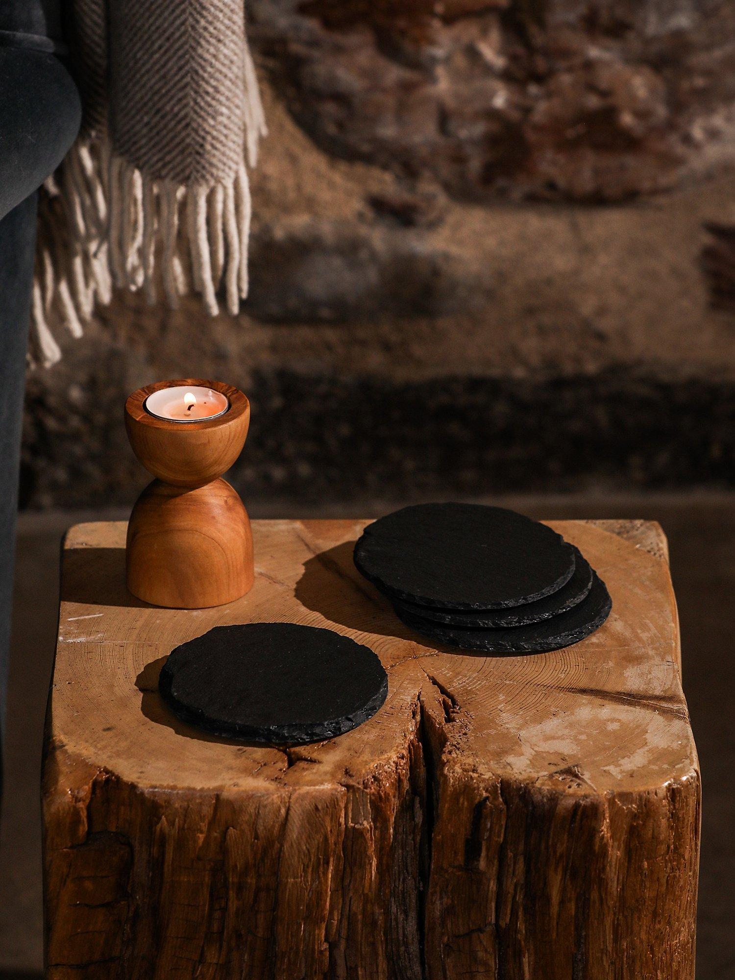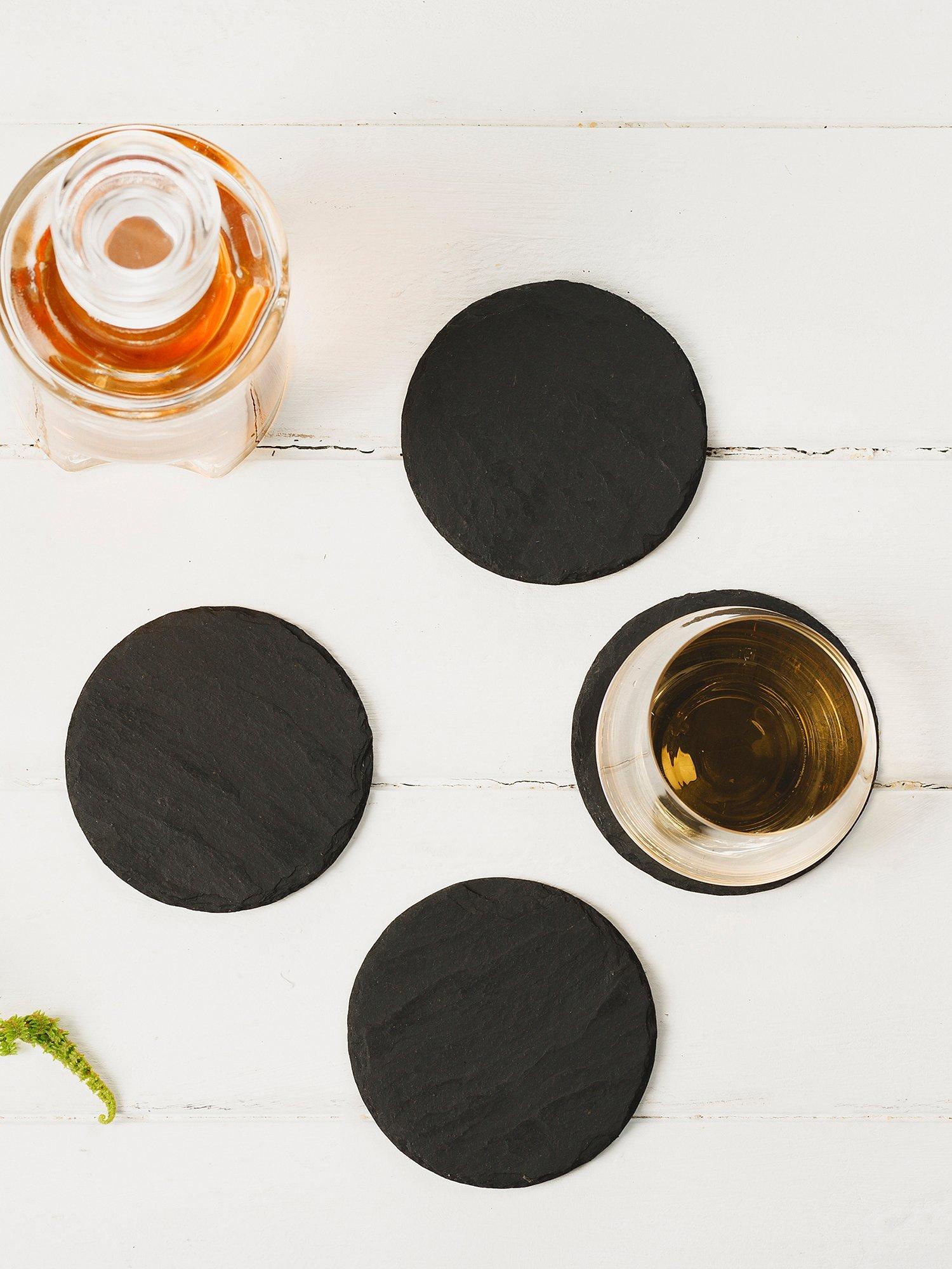 Practical, durable and sleek, these four round slate coasters add a touch of class to your dining table or coffee table, while also protecting your surfaces from water marks and high temperatures. Team them up with the matching slate placemats, also hand cut and finished by hand in Scotland.