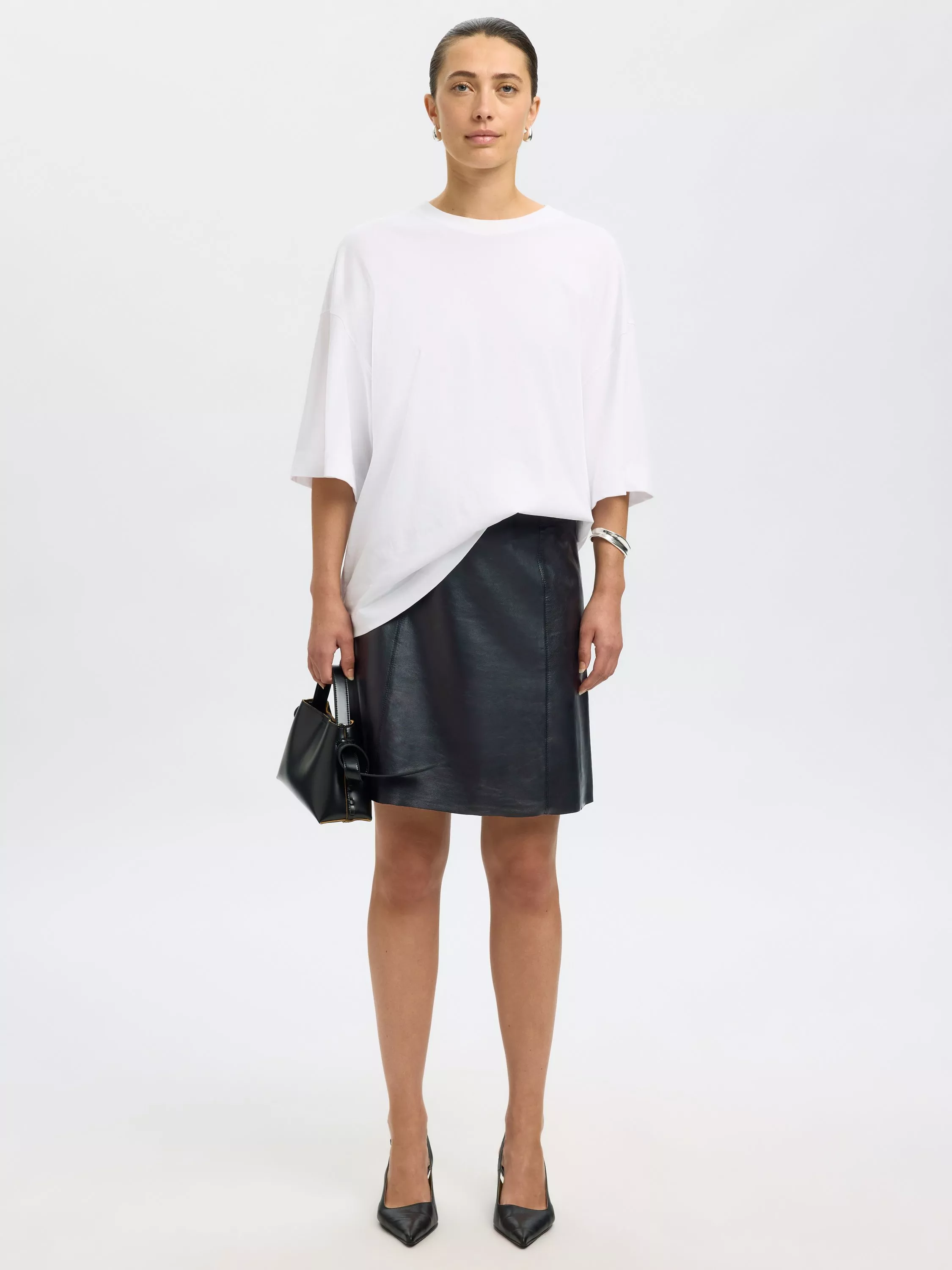 Selected’s high-rise leather skirt is crafted for everyday ease – resilient, comfortable, and cut to move with you. The regular fit and classic A-line shape bring smart style and it's complete with an easy zip fastening.