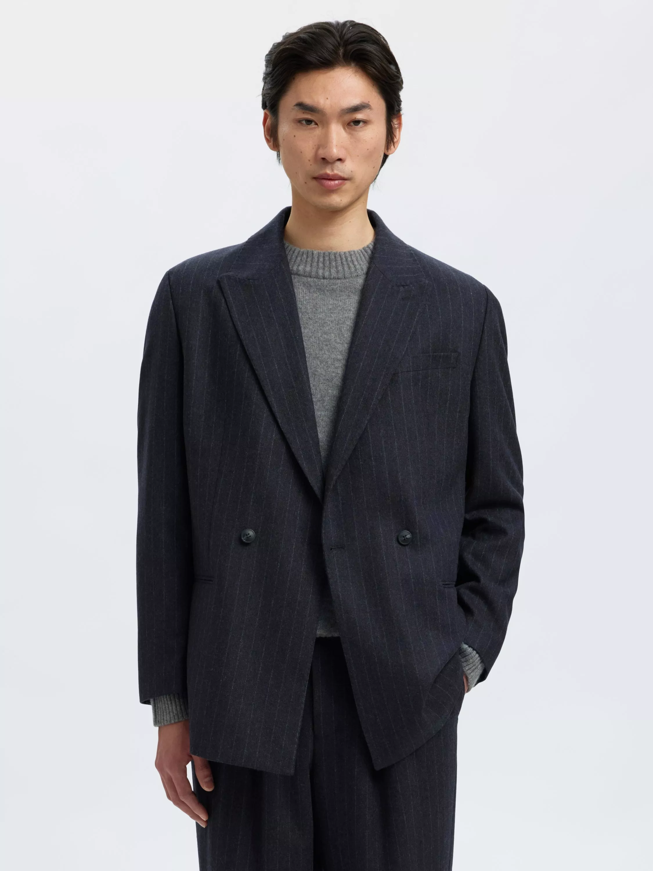 Express your individuality with this tailored wool blend blazer. The smart cut offers sharp lines for any occasion, while the long sleeves and comfortable stretch let you move with confidence and ease all day.