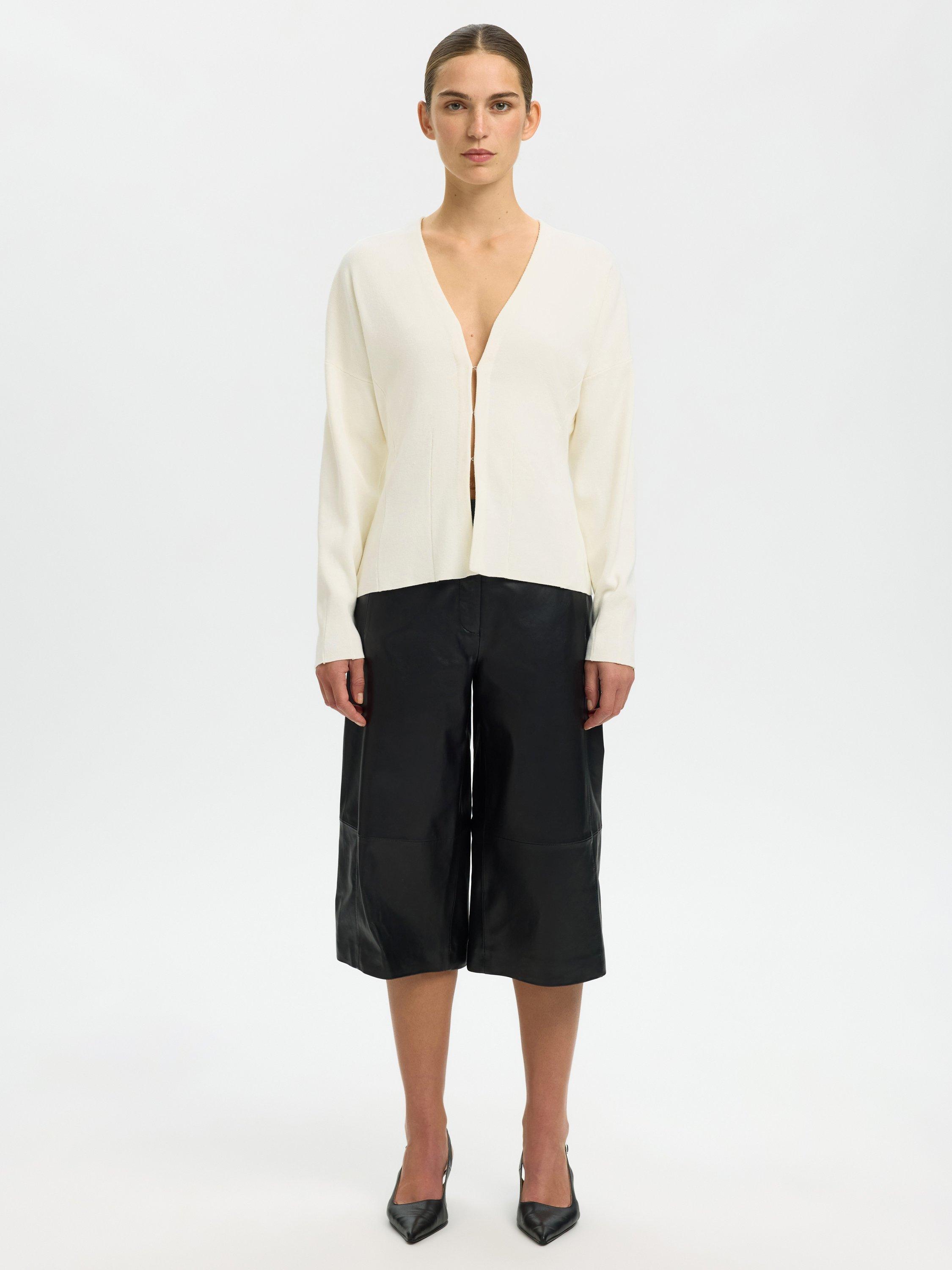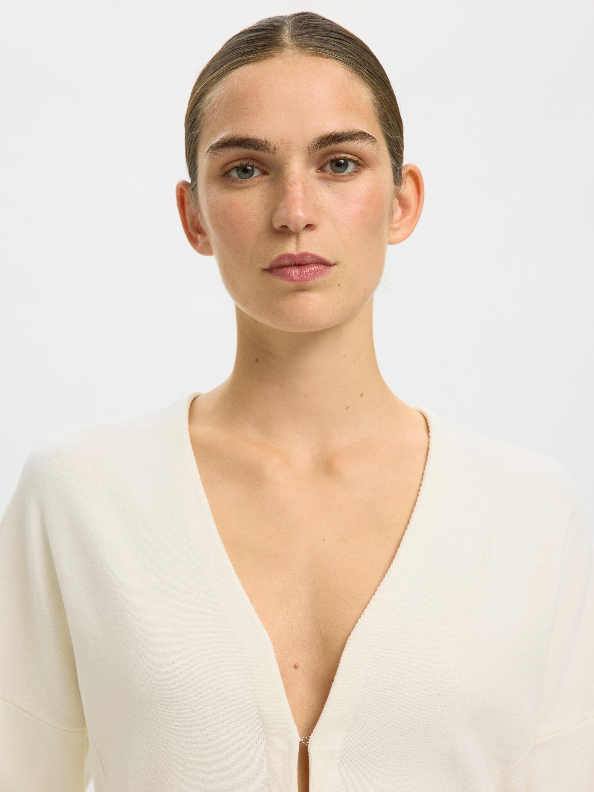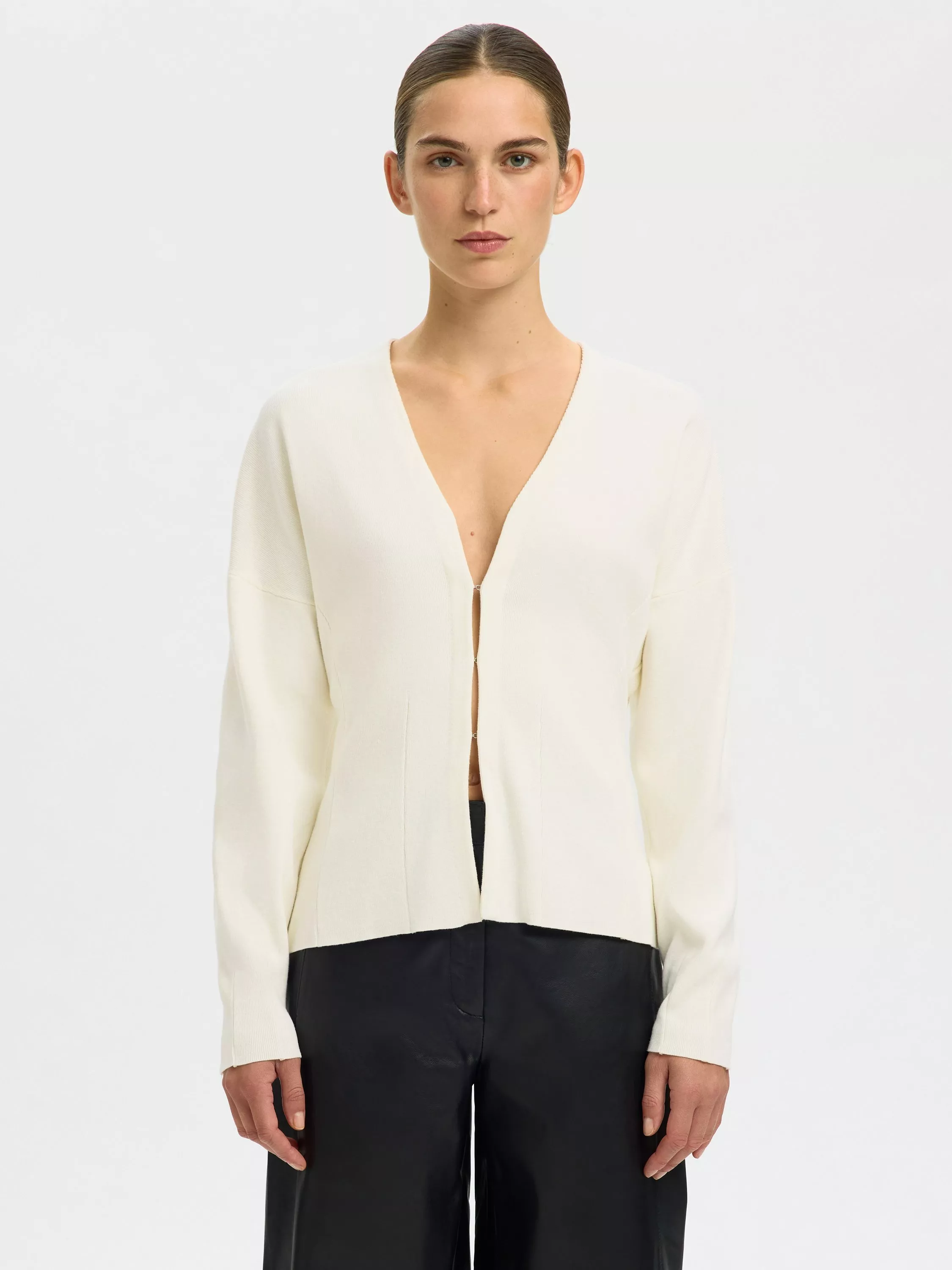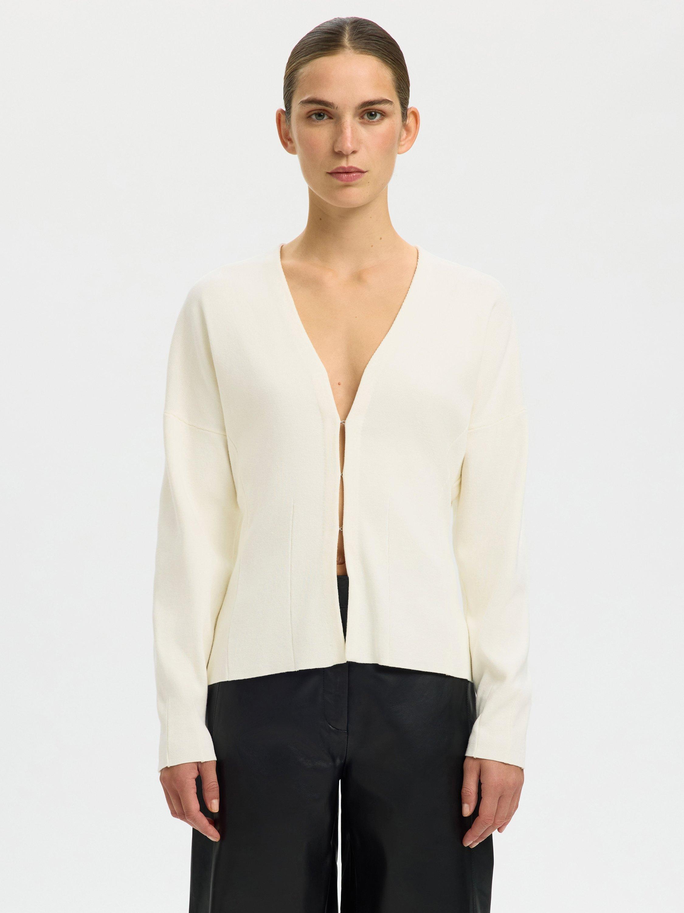 This slim-fit fine knit cardigan gives you a sharp look and feels soft against your skin. Its open neck and long sleeves keep you comfortable, whether at work or with friends.