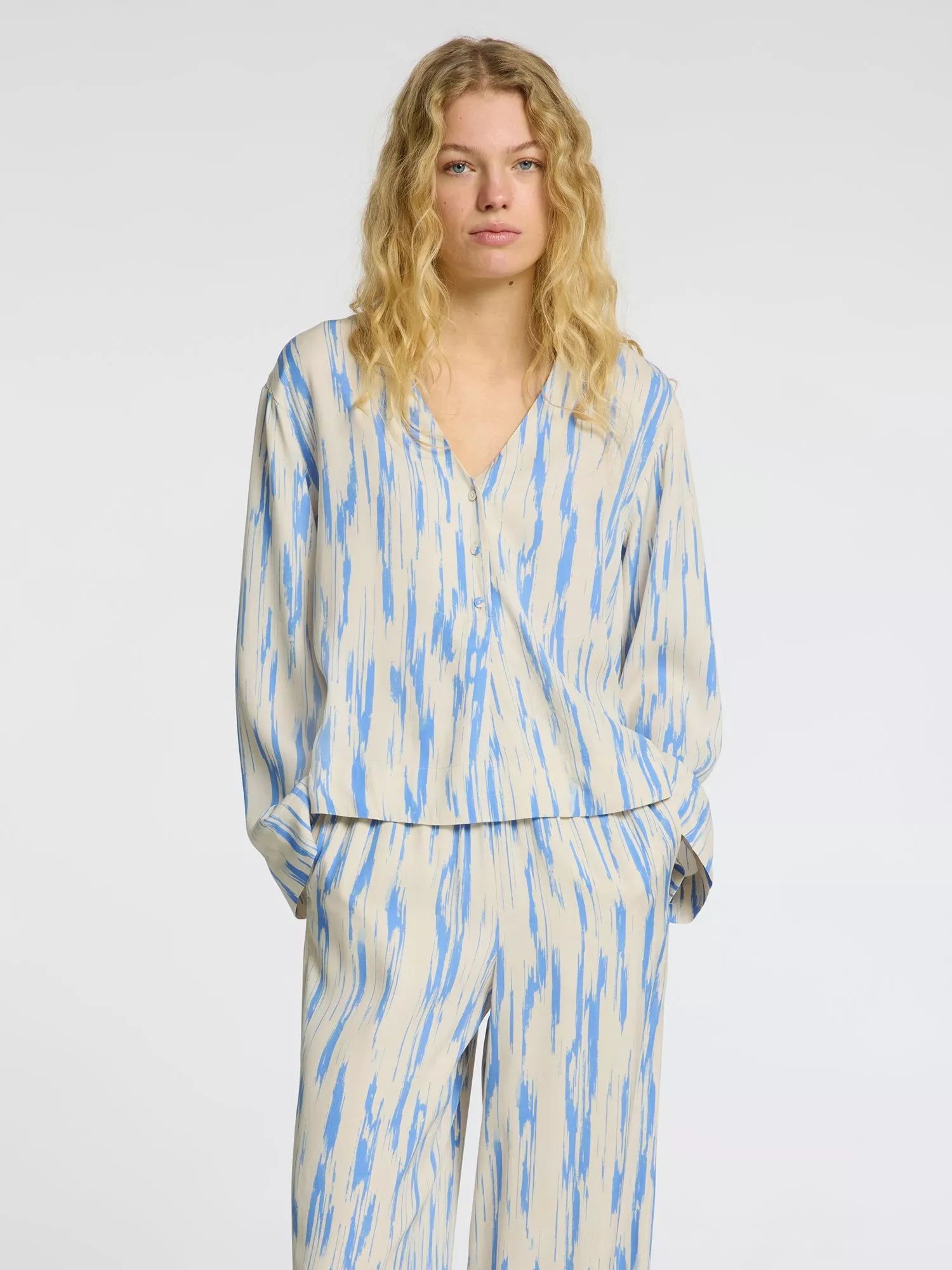 Bolstering your daytime collection, this blouse by Selected boasts a rich abstract print. Cut with a classic v-neck and long sleeves, it is made with light fabric for an easy daytime option.