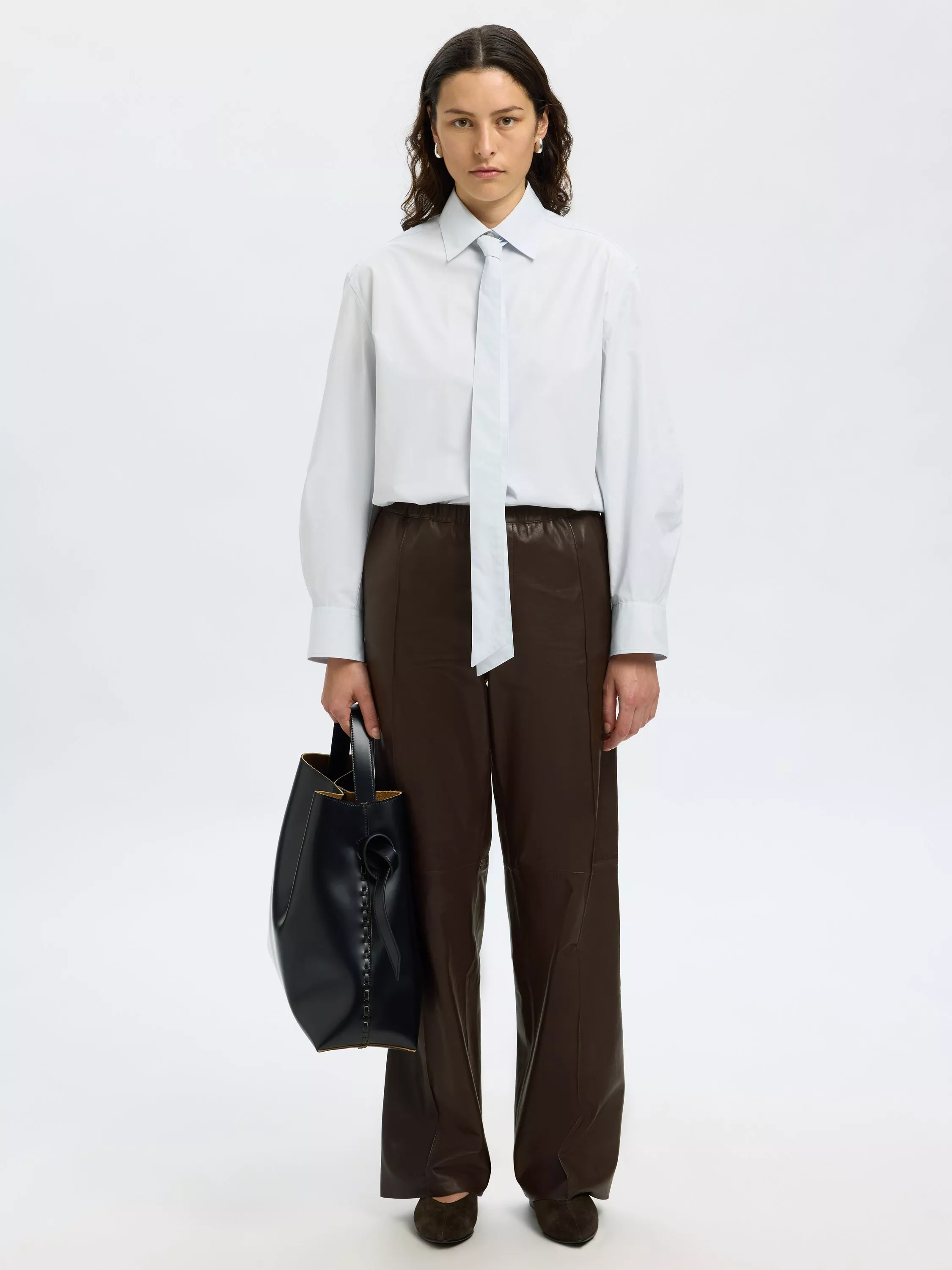 Wide-leg trousers from Selected, formed from pure leather. This style is cut to sit mid rise with a stretchy elasticated waist and regular length hems.