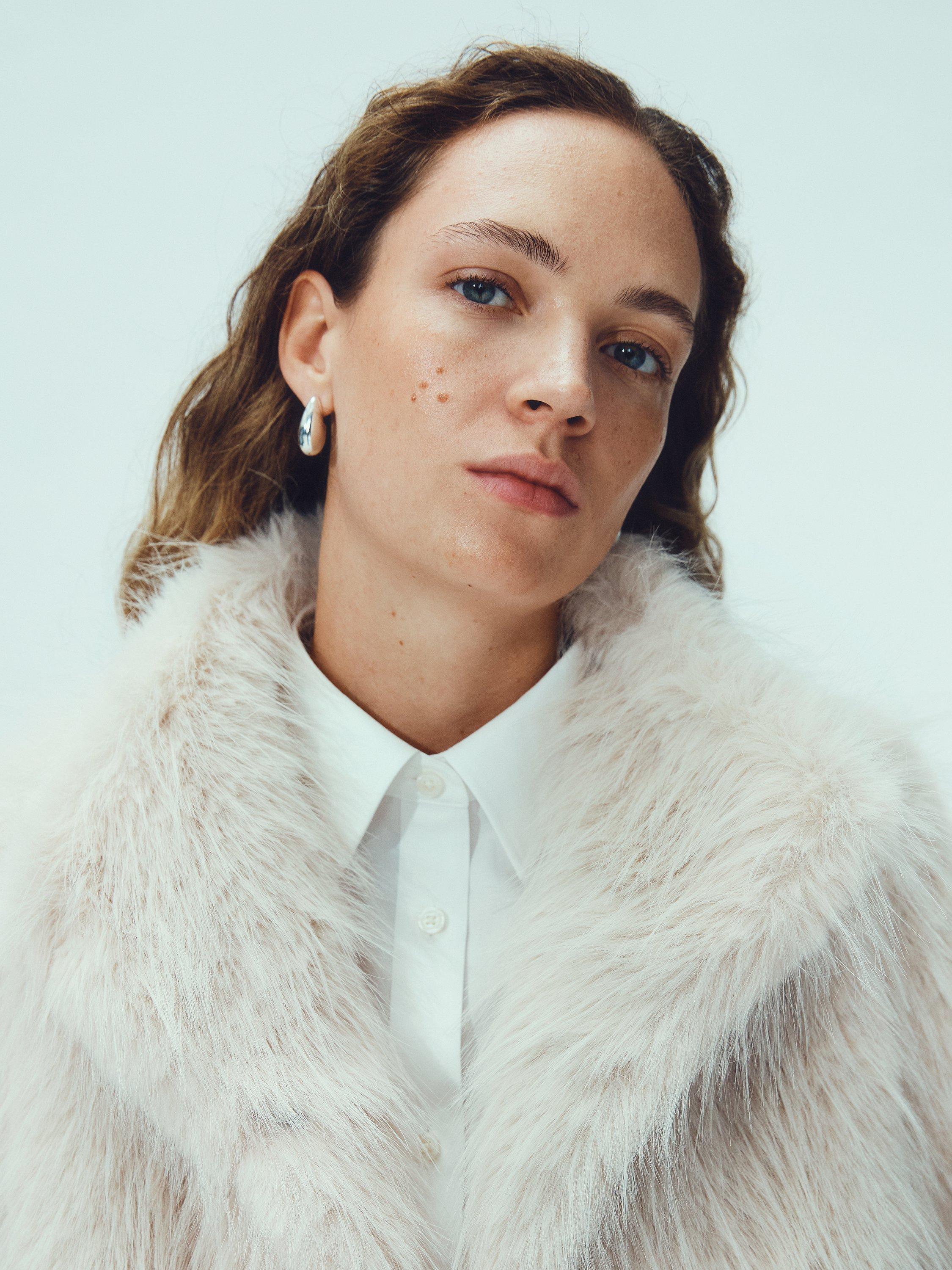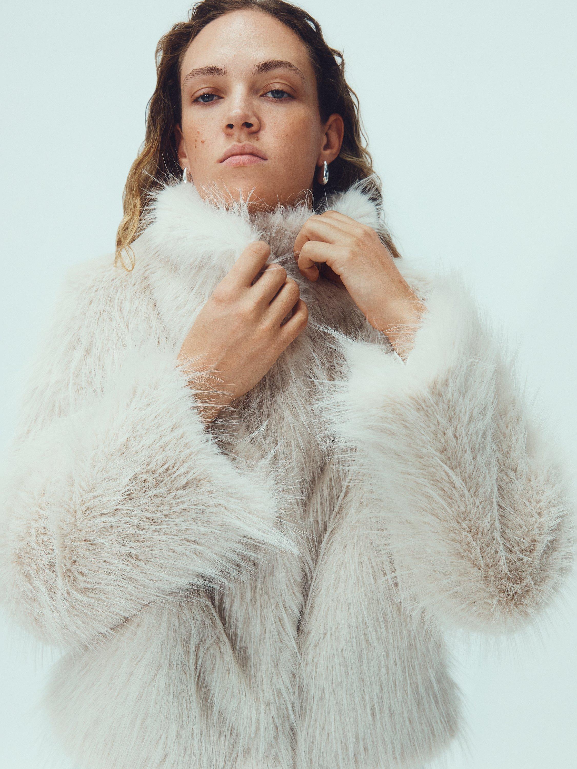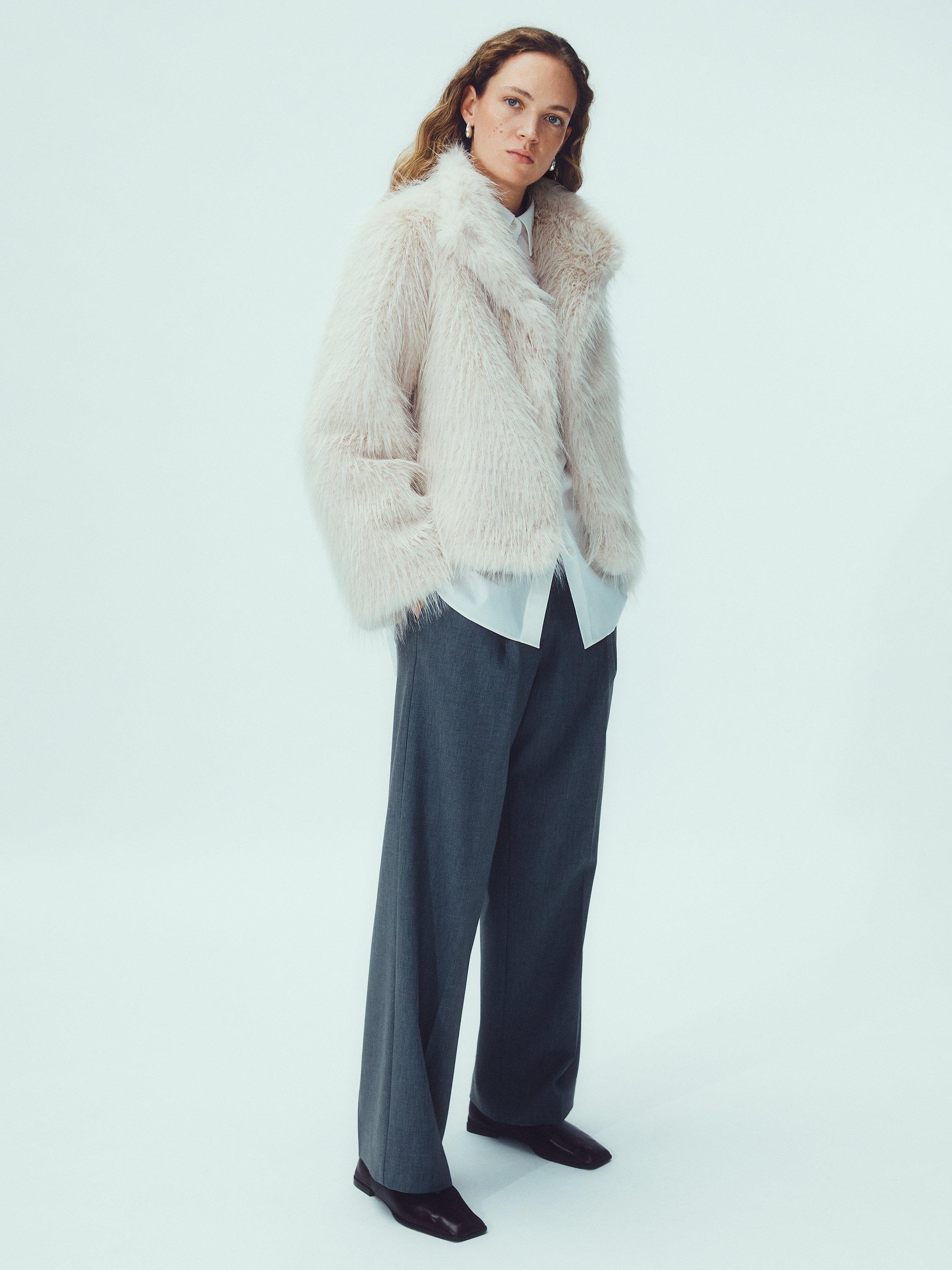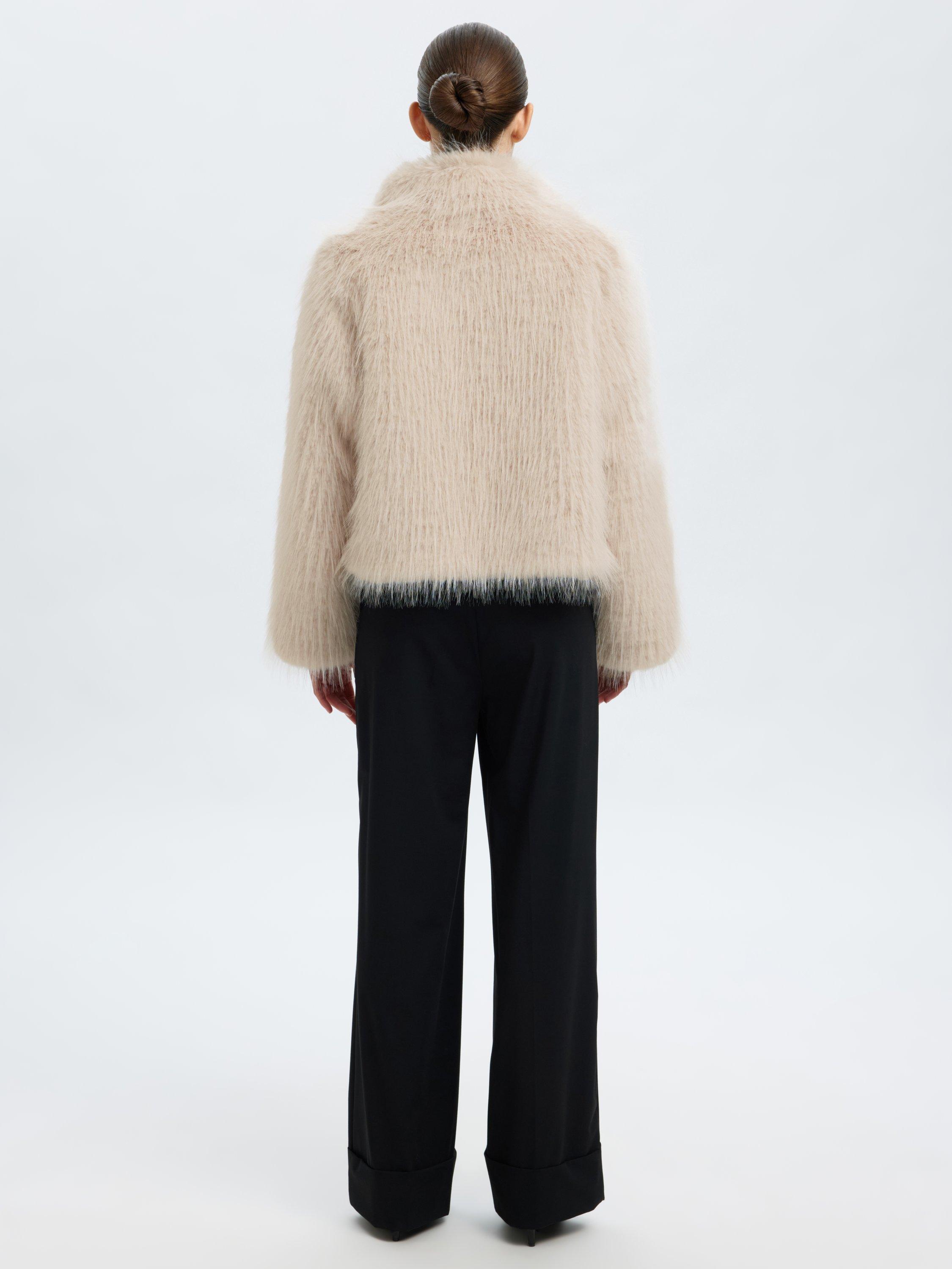 Elevate your evening with this textured faux fur jacket. Thoughtful details, a soft feel, and a classic collar make it a practical but fun choice. Complete with hidden side pockets.