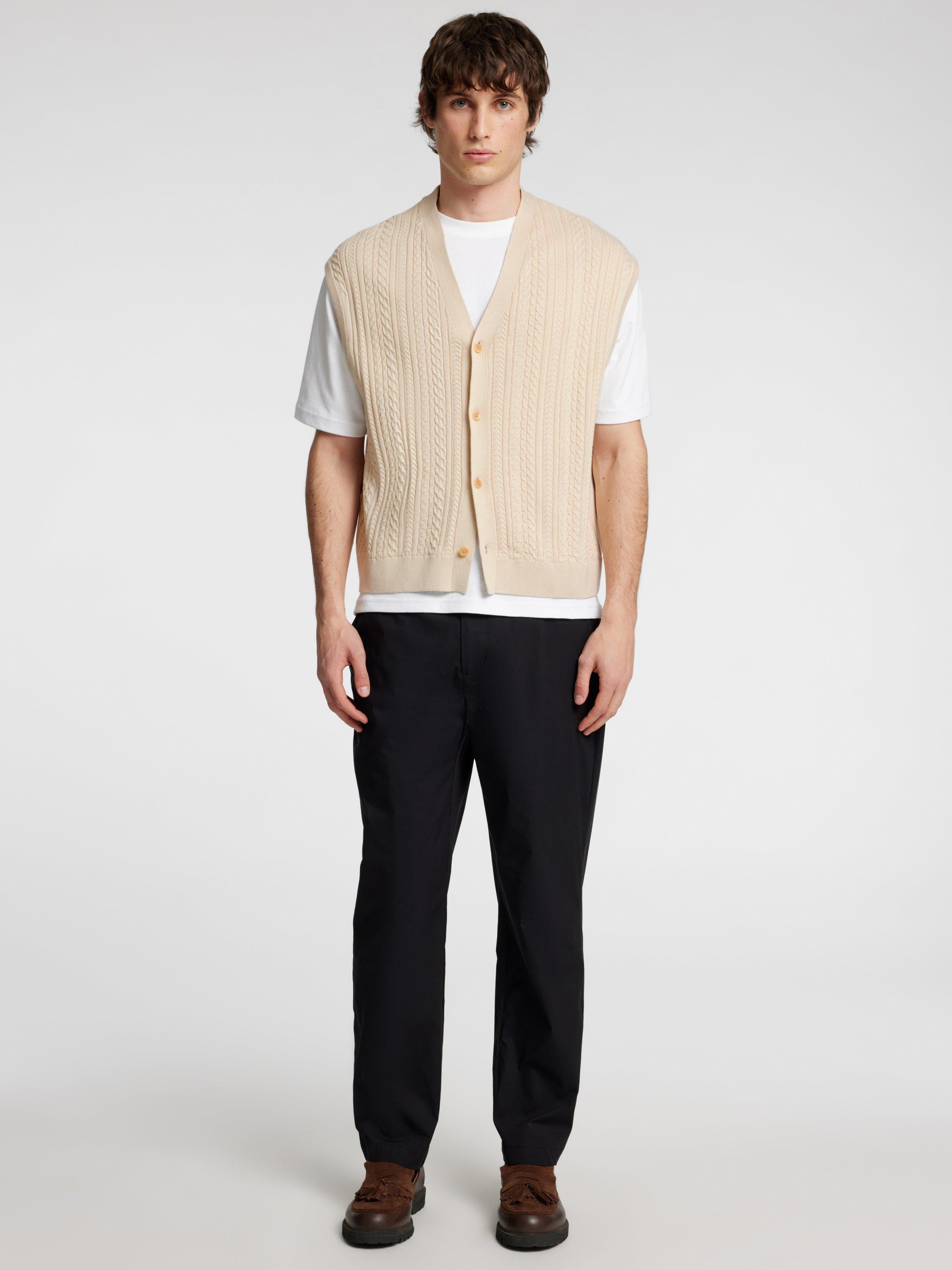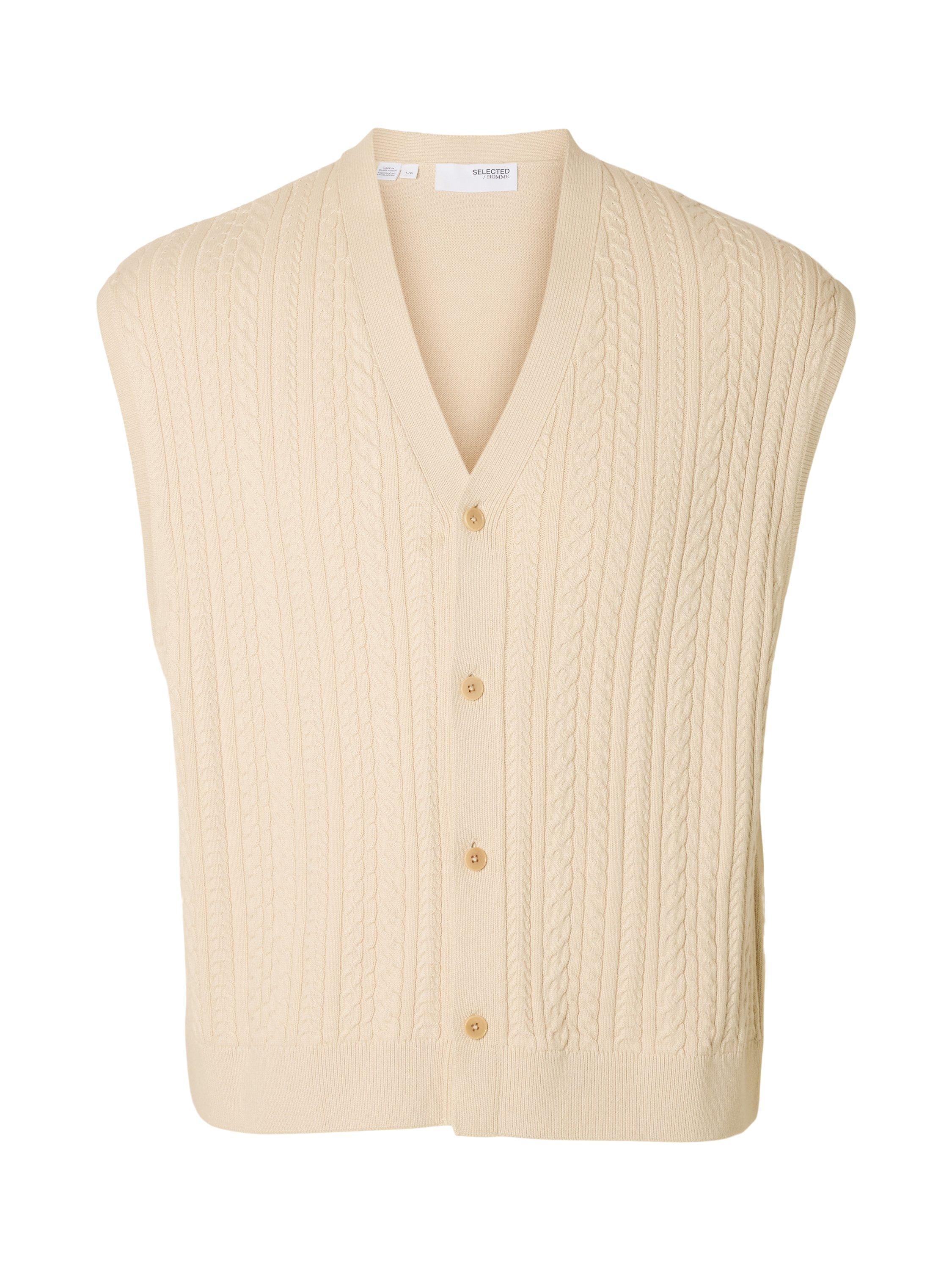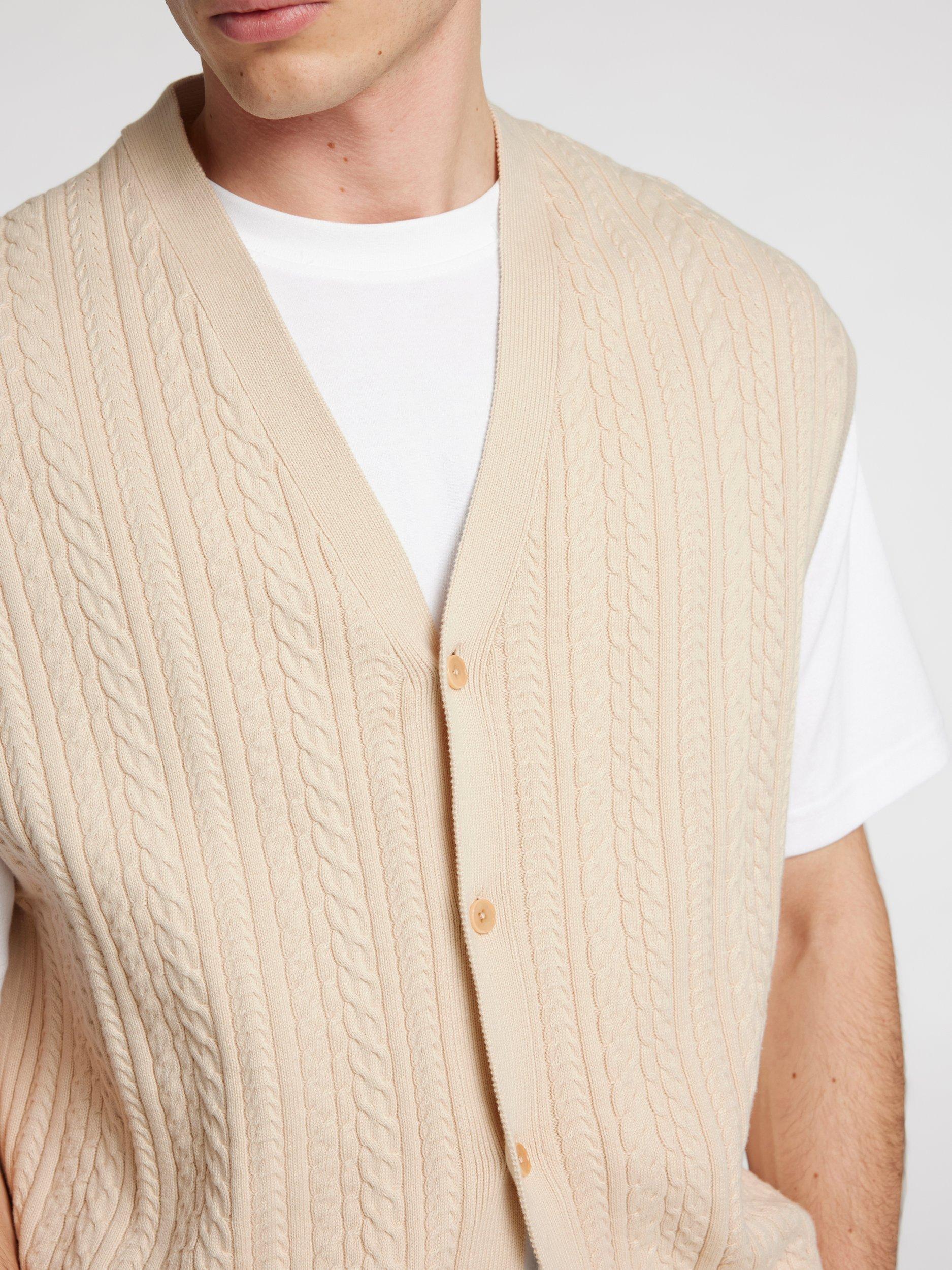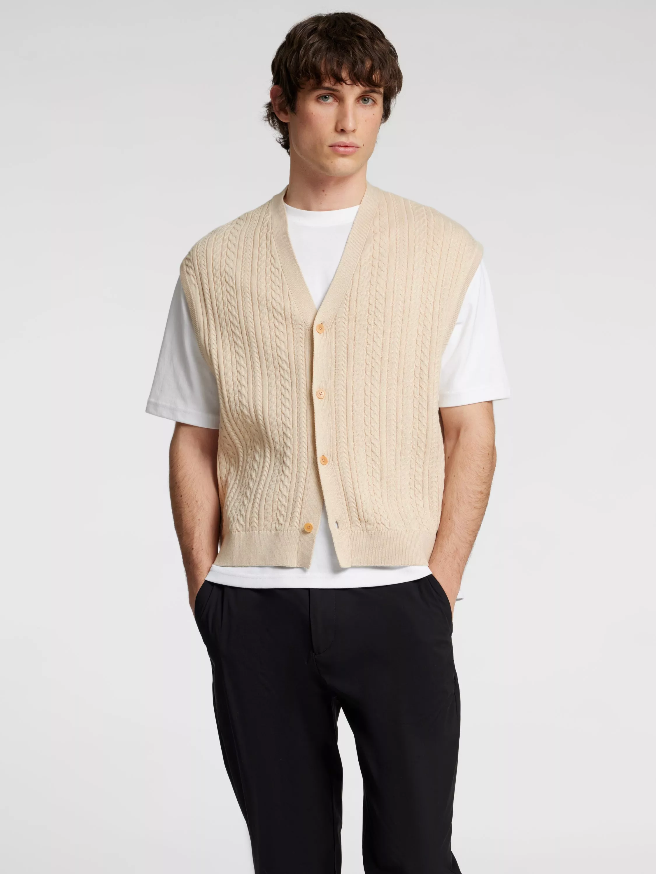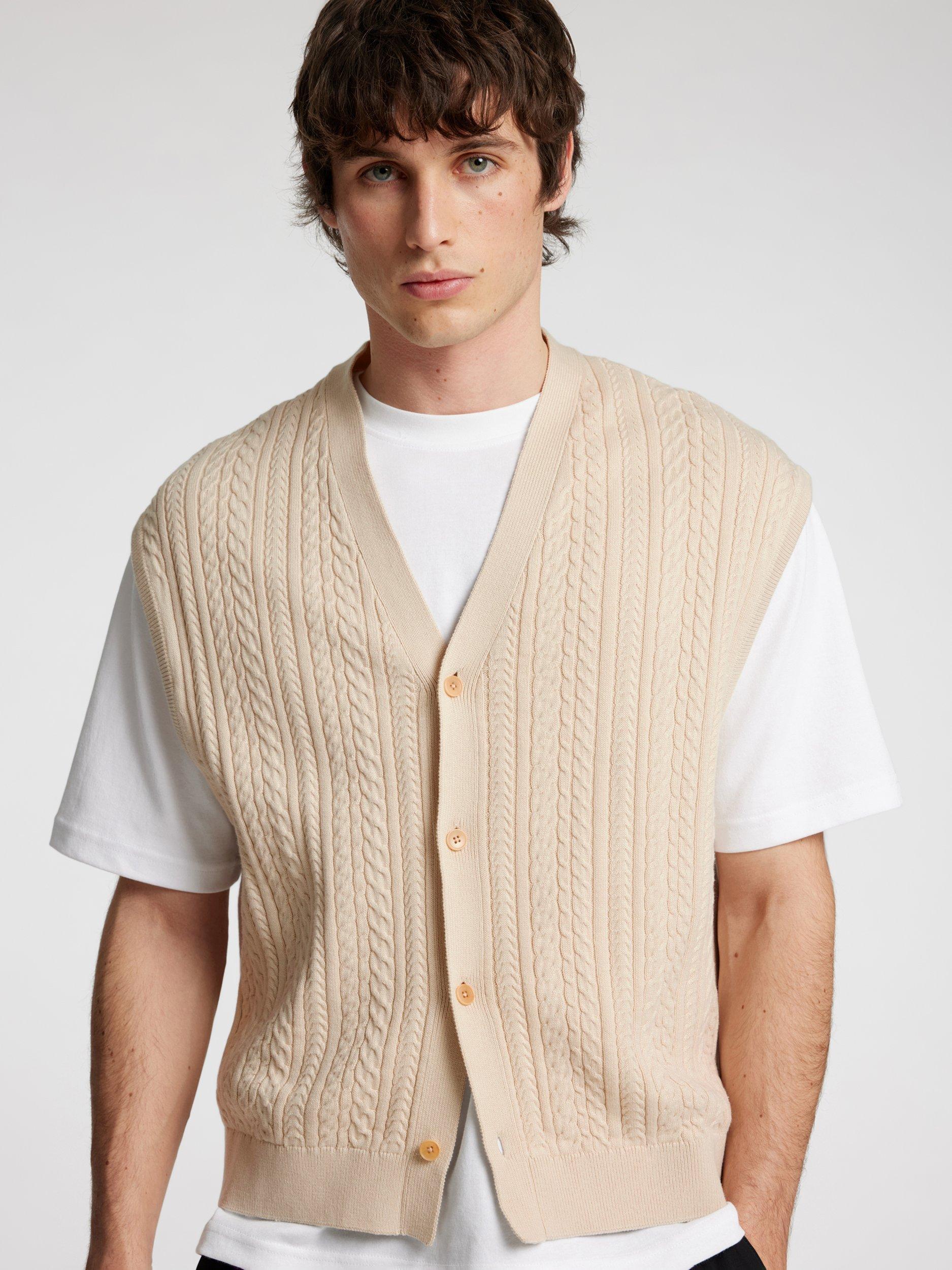 Refreshingly simple with its v-shaped neckline, this cable knitted vest from Selected is ideal for layering thanks to its breathable cotton construction.