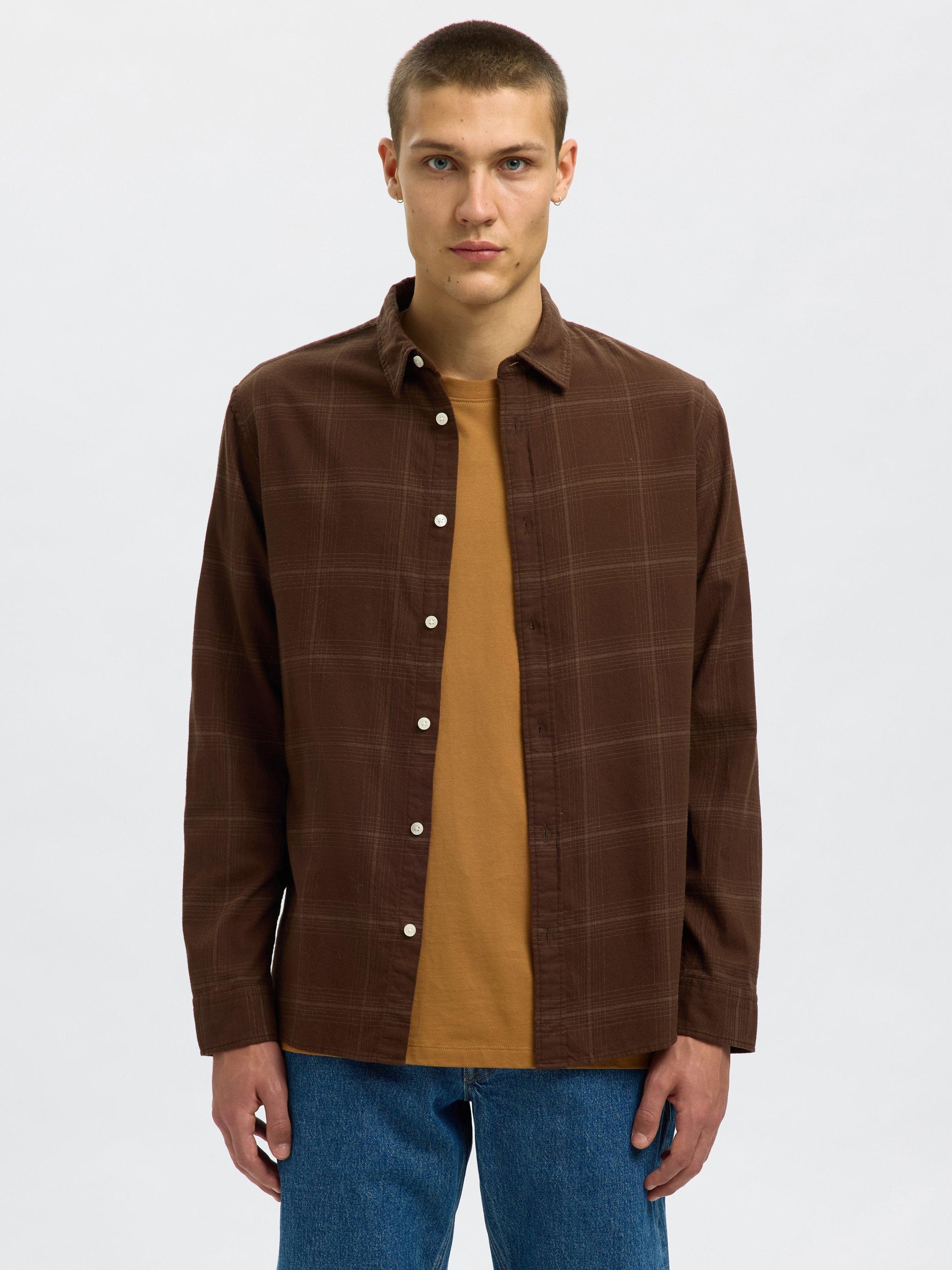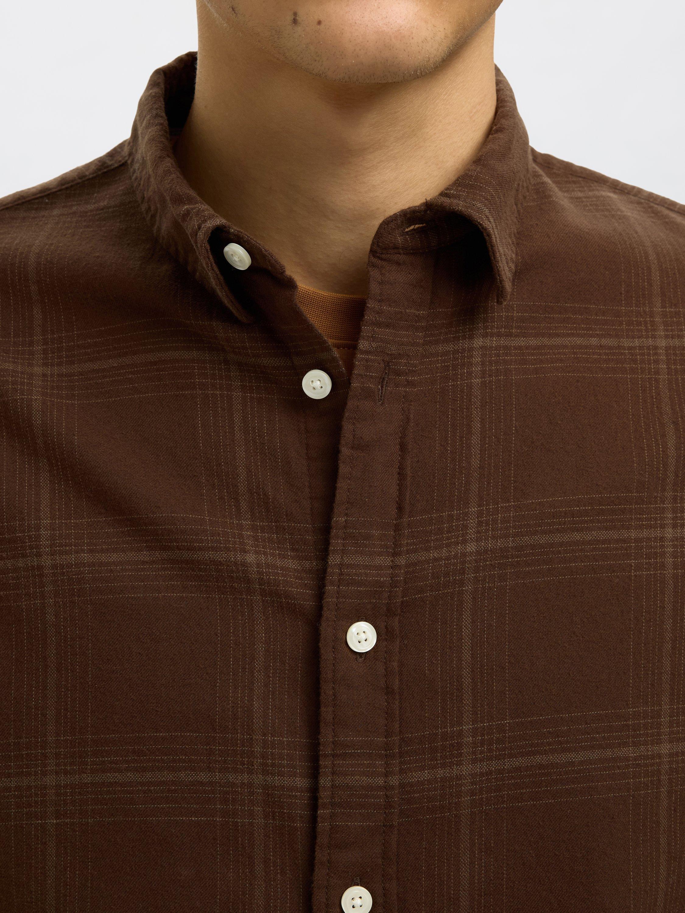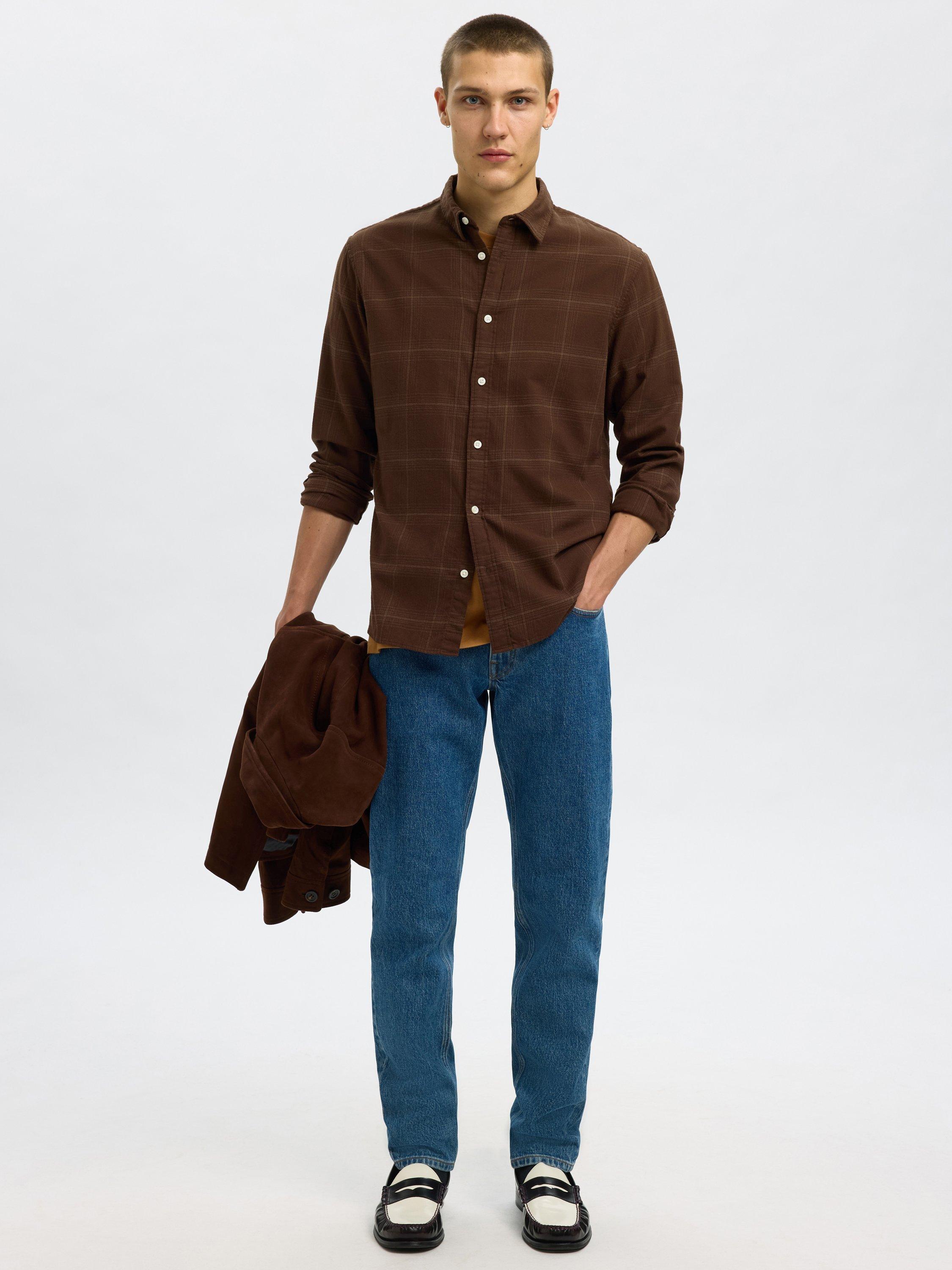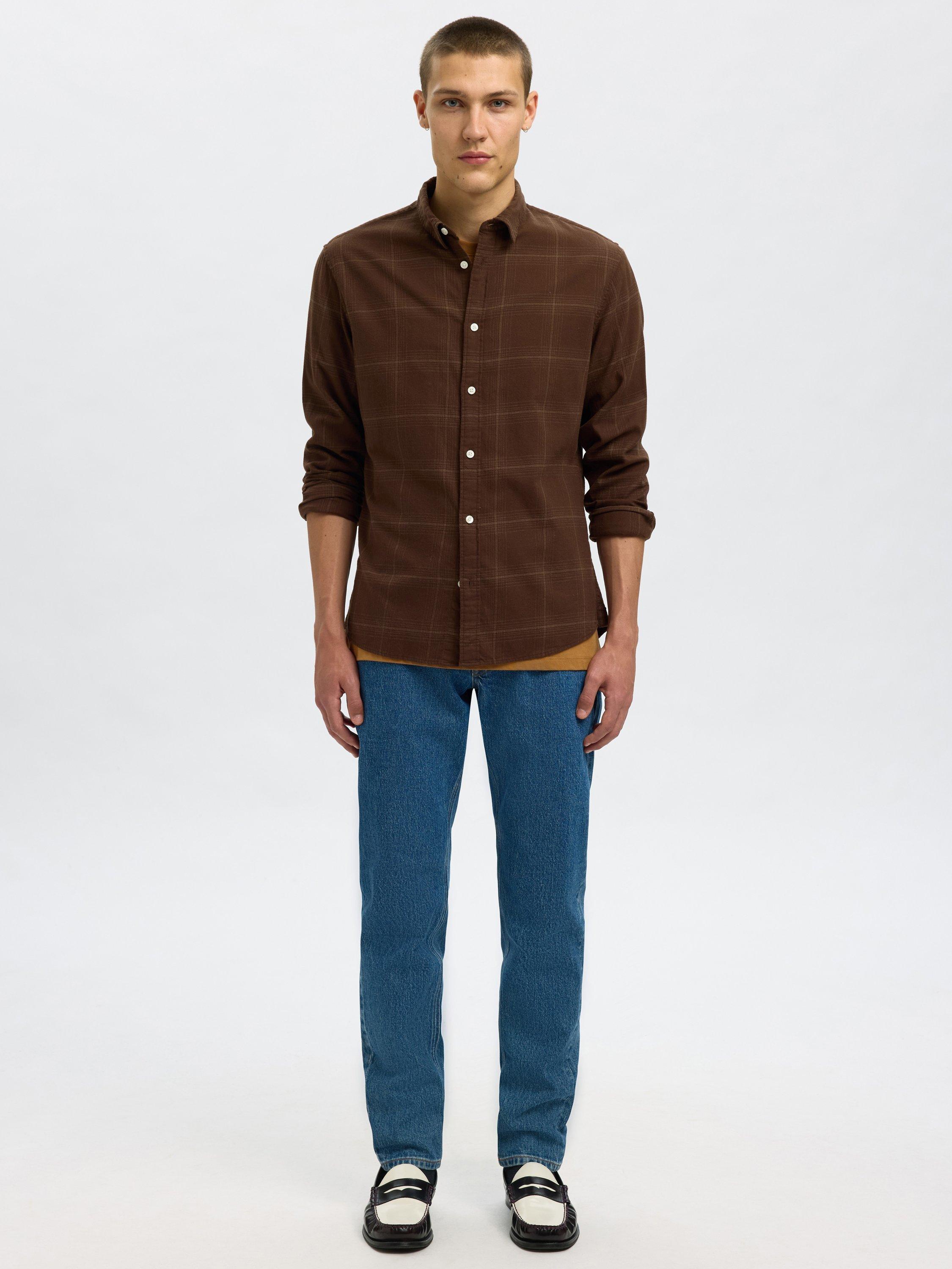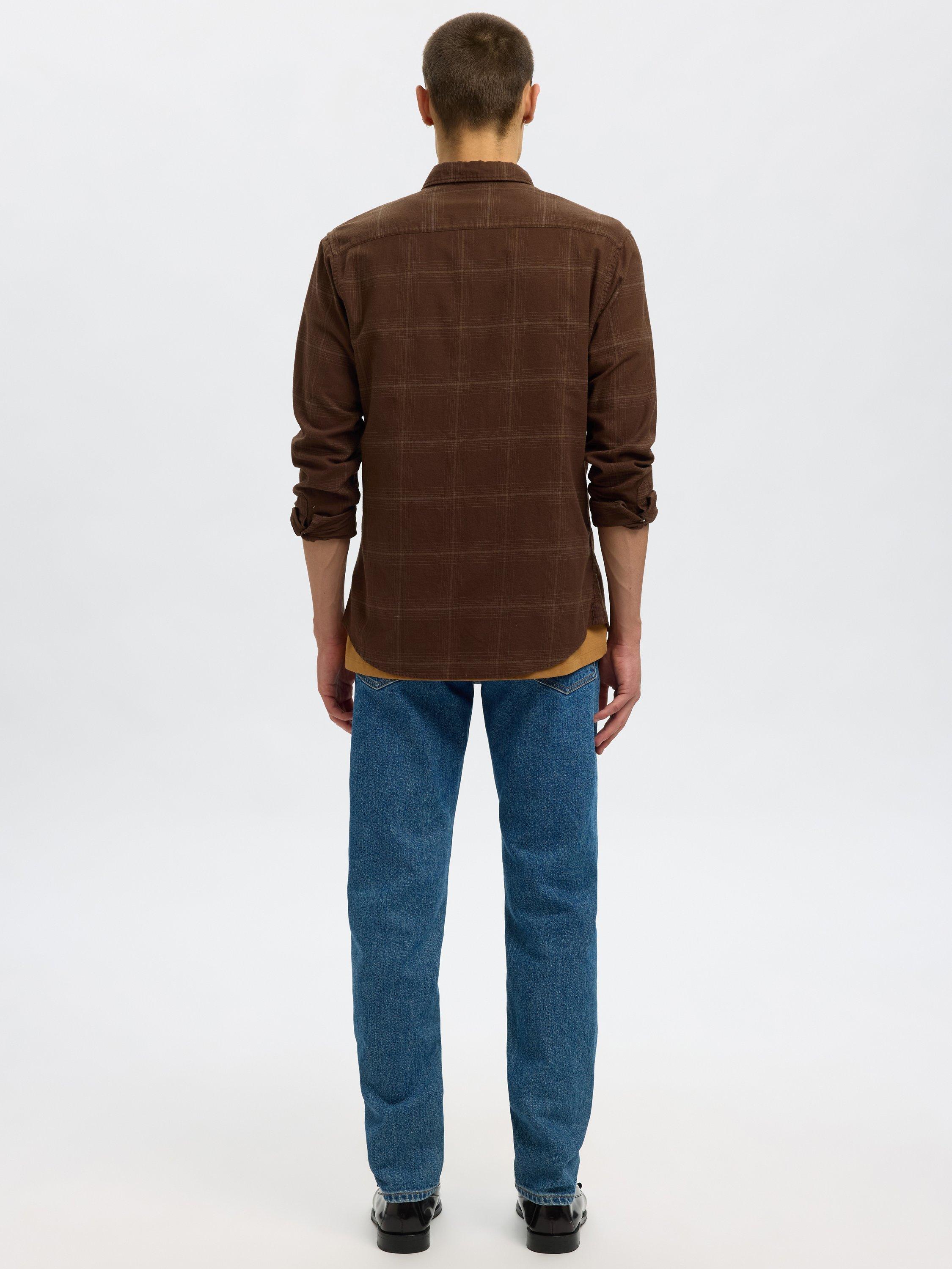 A versatile shirt rendered from soft cotton and finished with a check pattern. It can be worn alone or layered over a simple T-shirt when required.