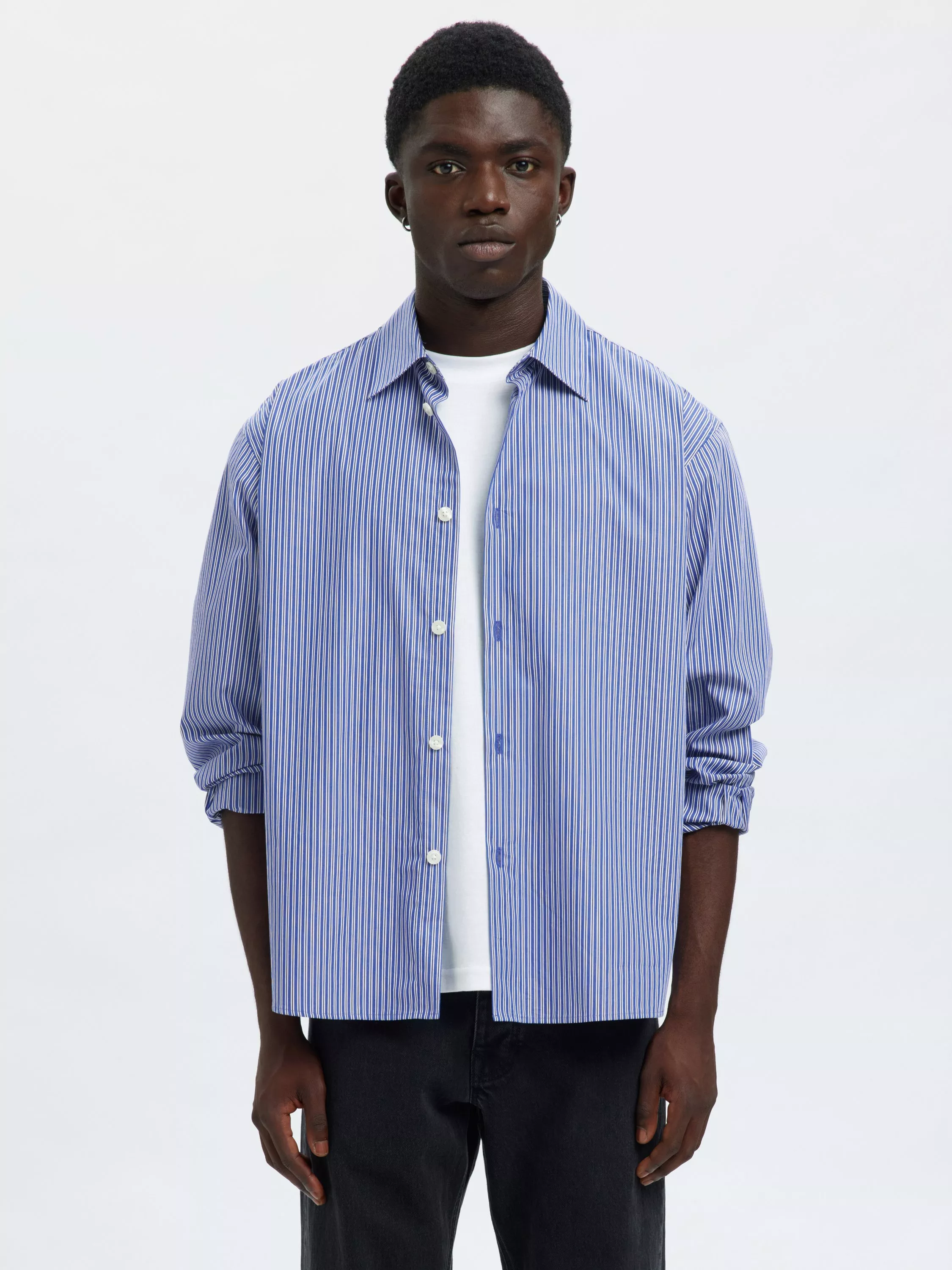 This regular-fit striped shirt keeps you comfortable and sharp. Its crisp cotton material and classic collar make it a go-to choice for the office, special occasions or whatever is on your agenda.