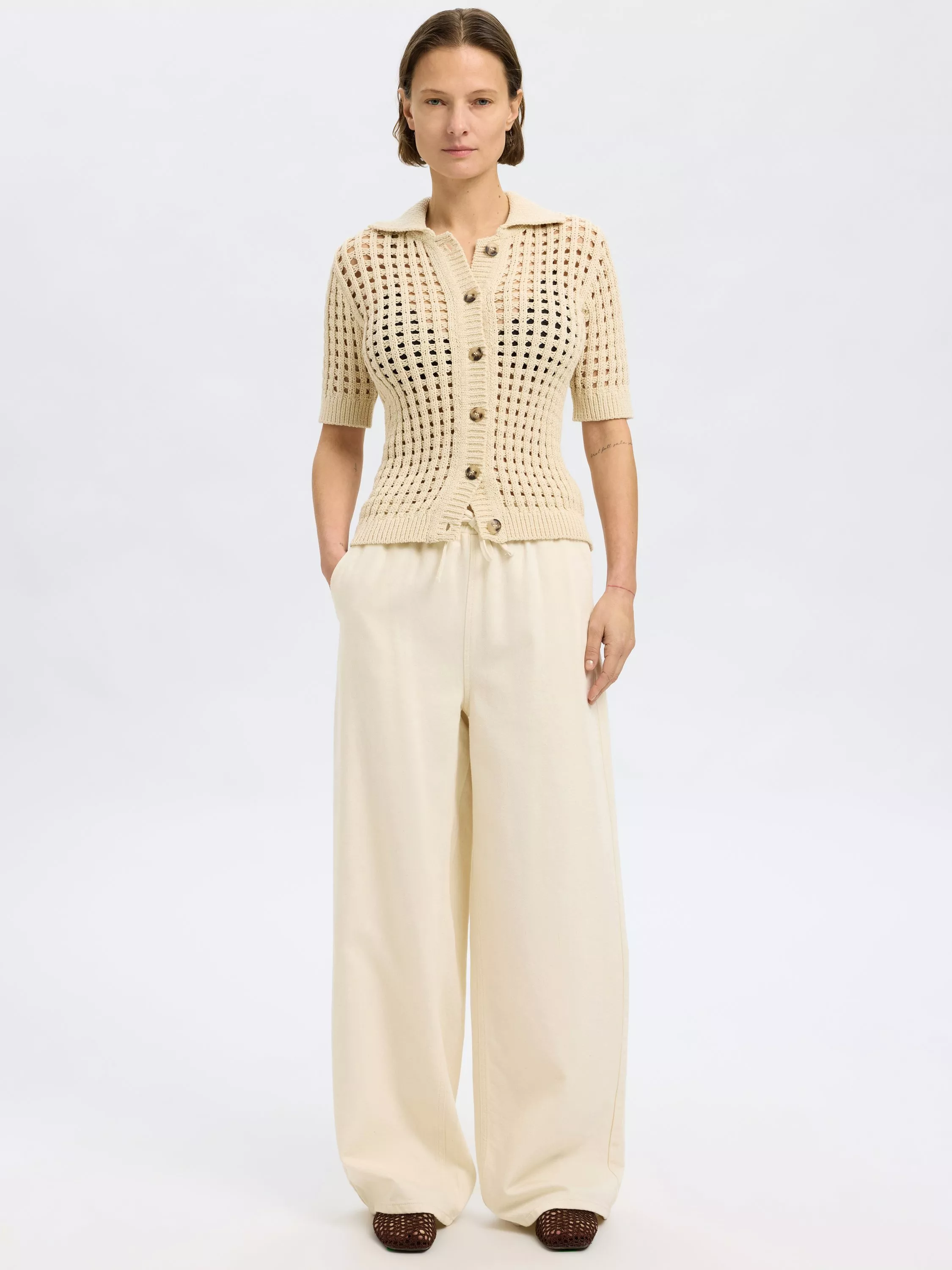 High-rise cotton-blend trousers for warmer months. Cut in a relaxed fit with a wide leg and comfortable elasticated waist.