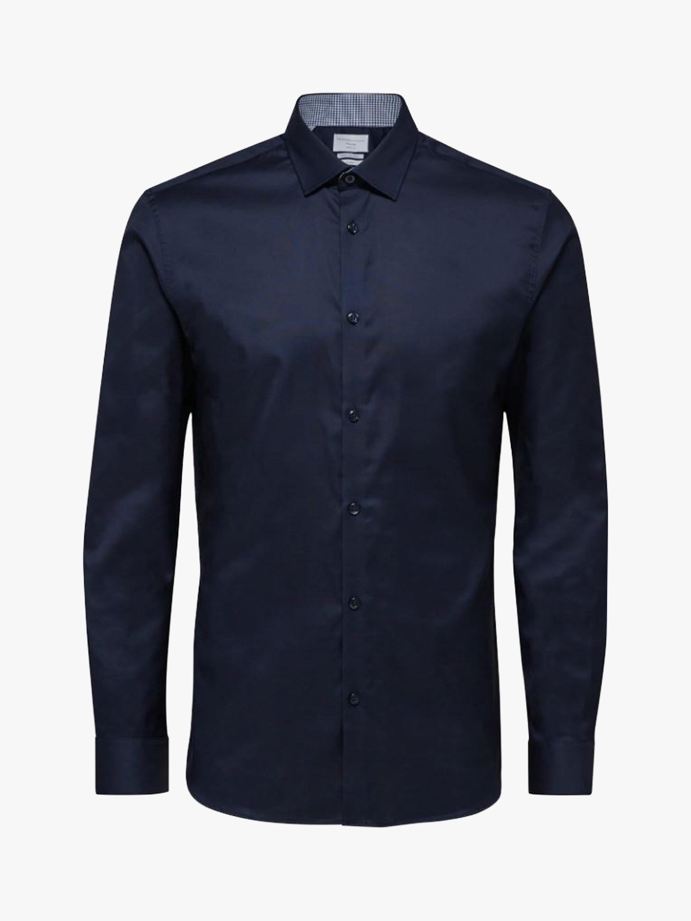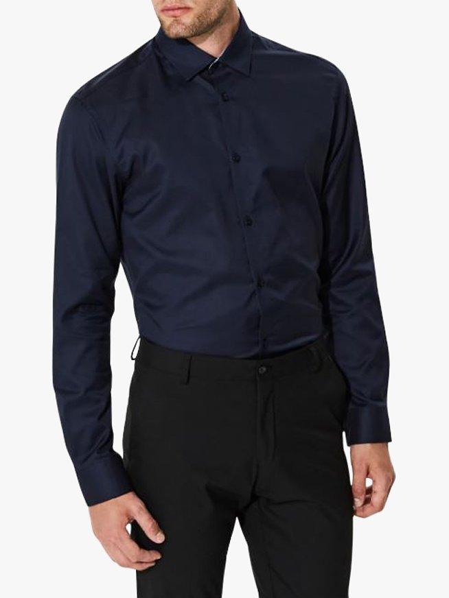 Current but different is the ethos of Danish fashion house SELECTED HOMME, and the Mark shirt is one of its icons. It's made from an organic cotton blend and cut to a regular fit and finished to a subtle satin texture, with a printed lining for a distinctive touch of premium fashion that looks great paired with slim suit trousers.
