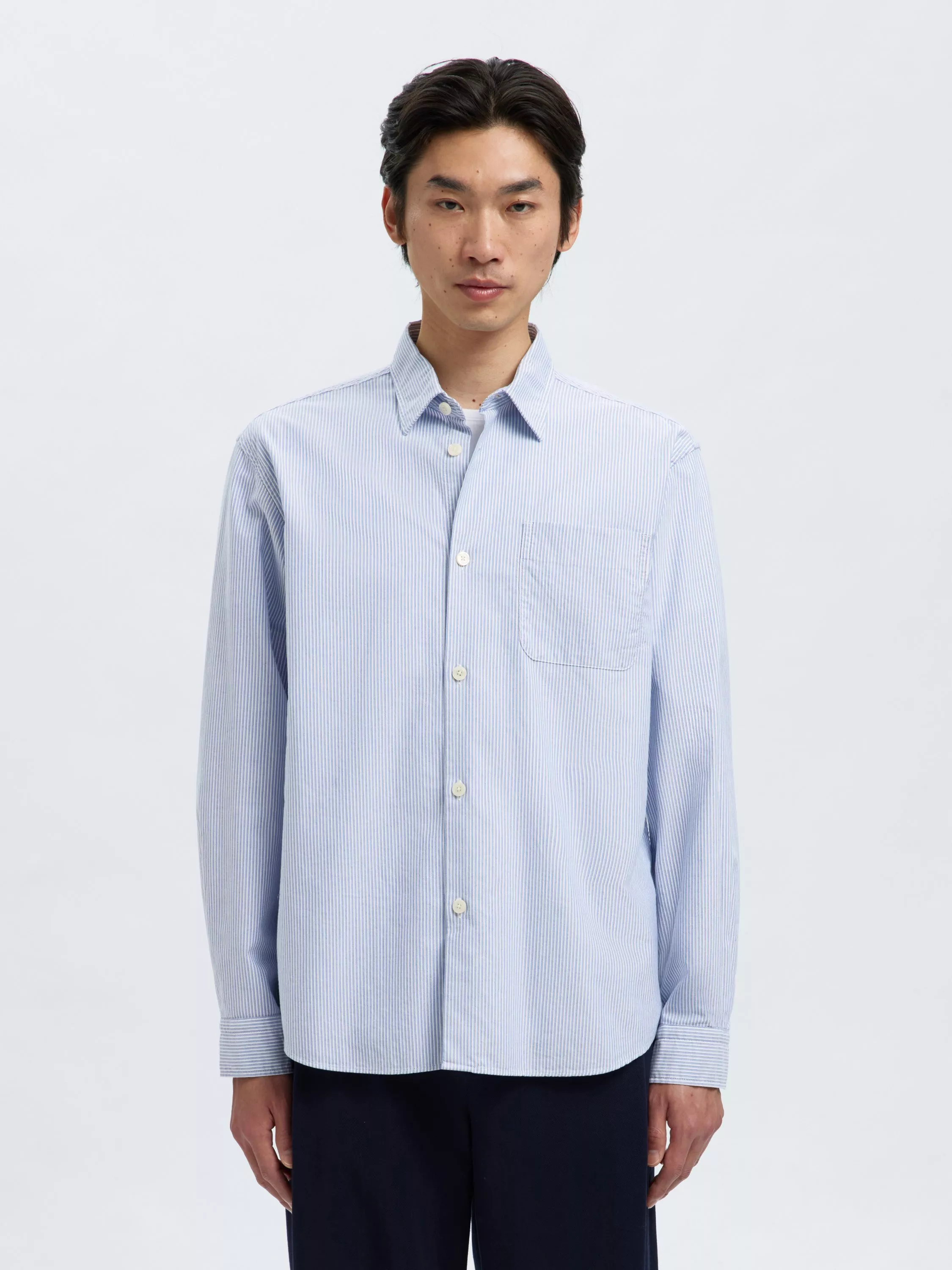 This crisp shirt is a timeless and comfortable choice for the everyday wardrobe. The classic collar and regular cut suit any purpose, while soft organic cotton supports wherever your plans take you.