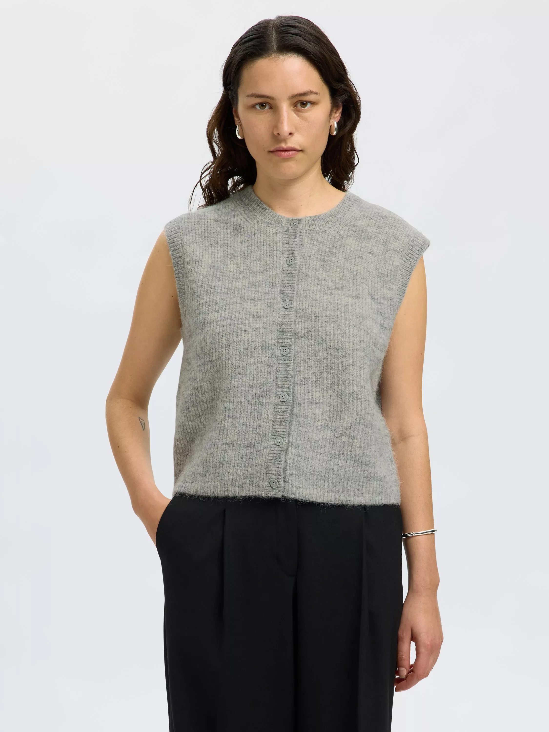 This regular-fit wool blend knit top keeps you comfortable in cooler moments. Its round neck and sleeveless style invite effortless layering, great for everyday adventures.