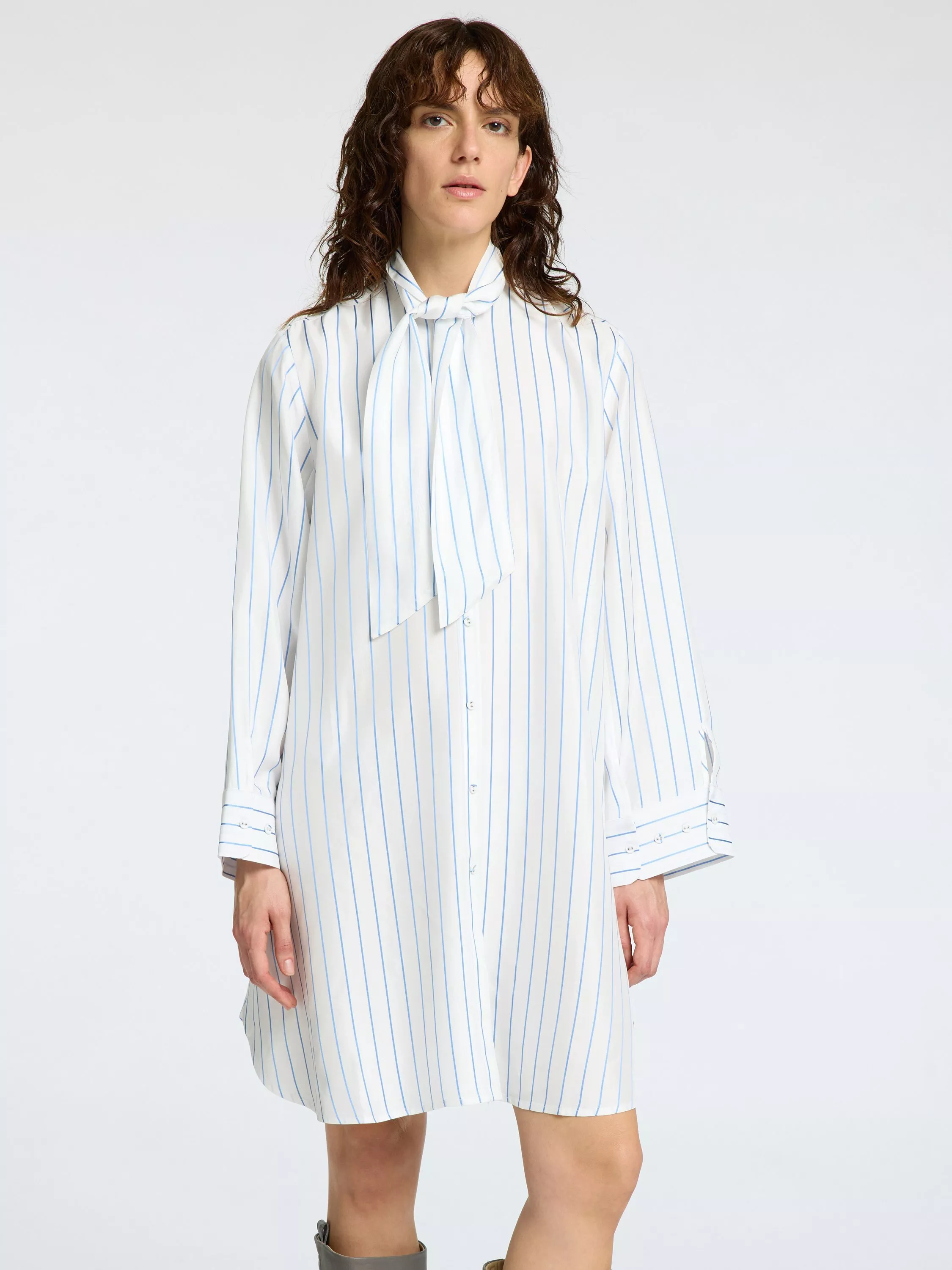 An effortless choice, this long shirt from Selected features a tie collar neck, long sleeves and classic stripes throughout.