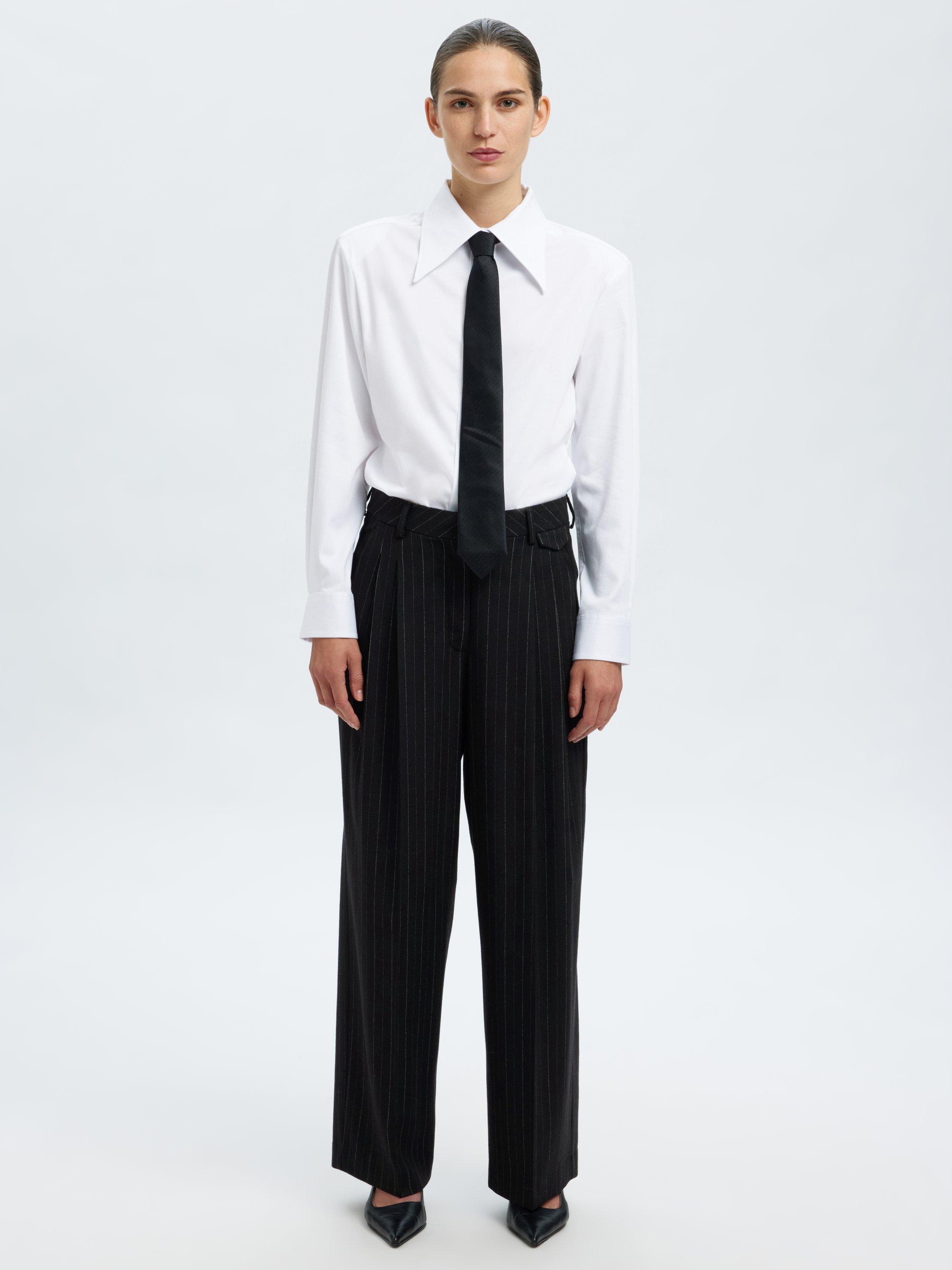 A pair of sculpted, no-fuss striped pleat front trousers by Selected, made from a soft wool blend. Designed for comfort and confidence, they sit mid rise with a zip fly and fall to a regular length.
