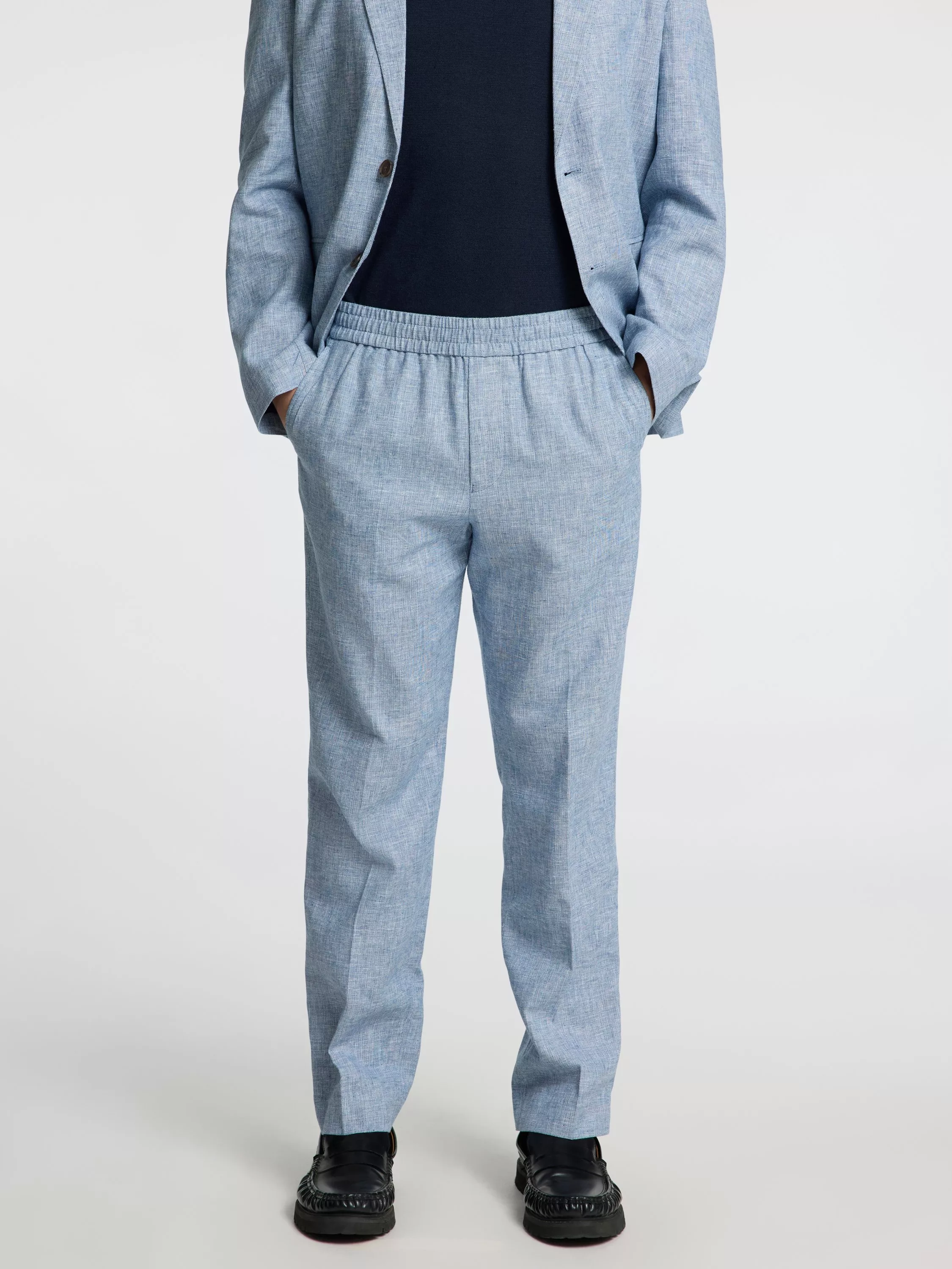 SelectedMalik Tailored Fit Linen Suit Trousers, Light Blue