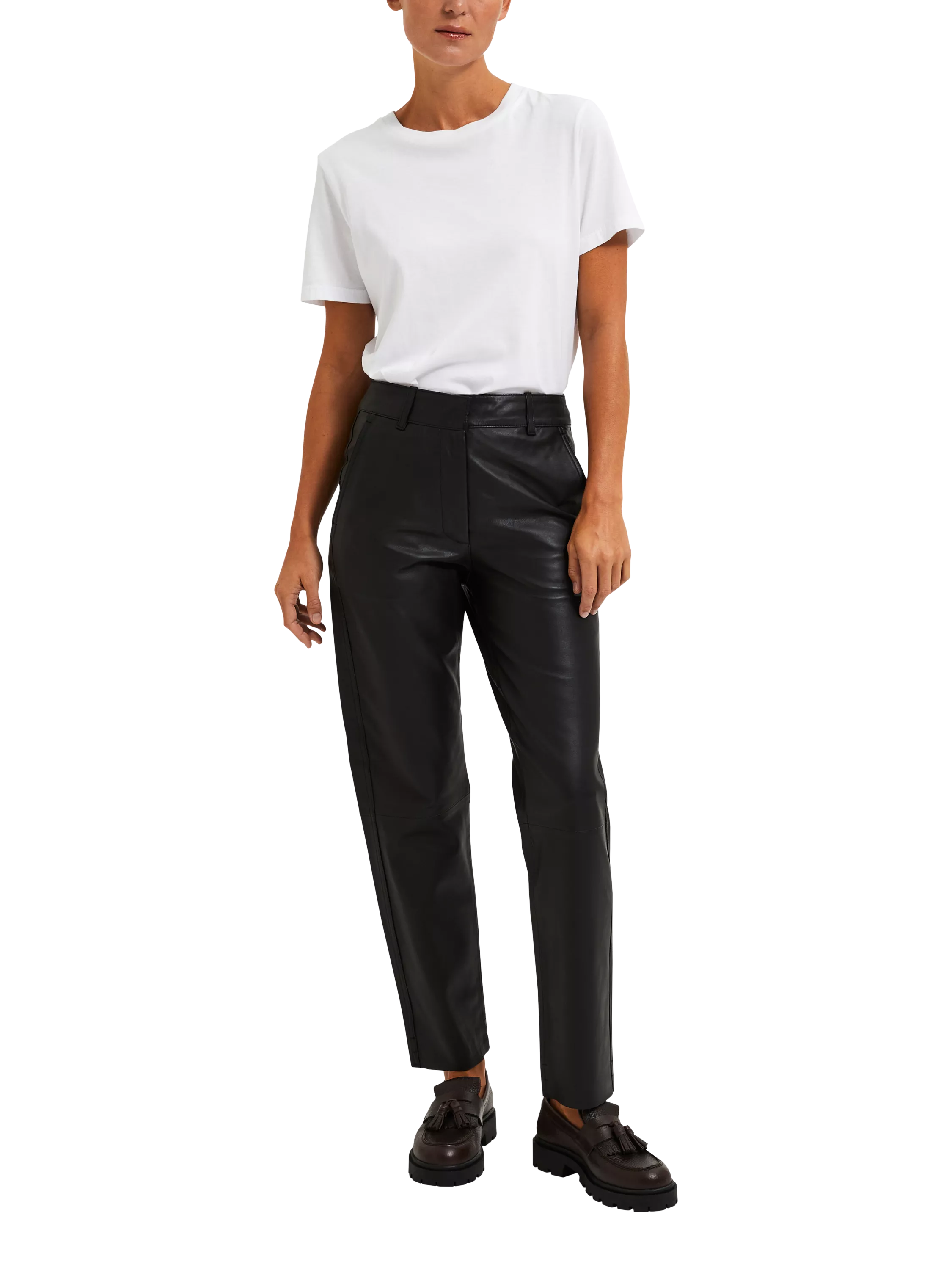 These tailored trousers offer everyday comfort with a sharp edge. Made from pure leather, their regular fit moves with you, bringing clever style and practical elegance to any occasion.
