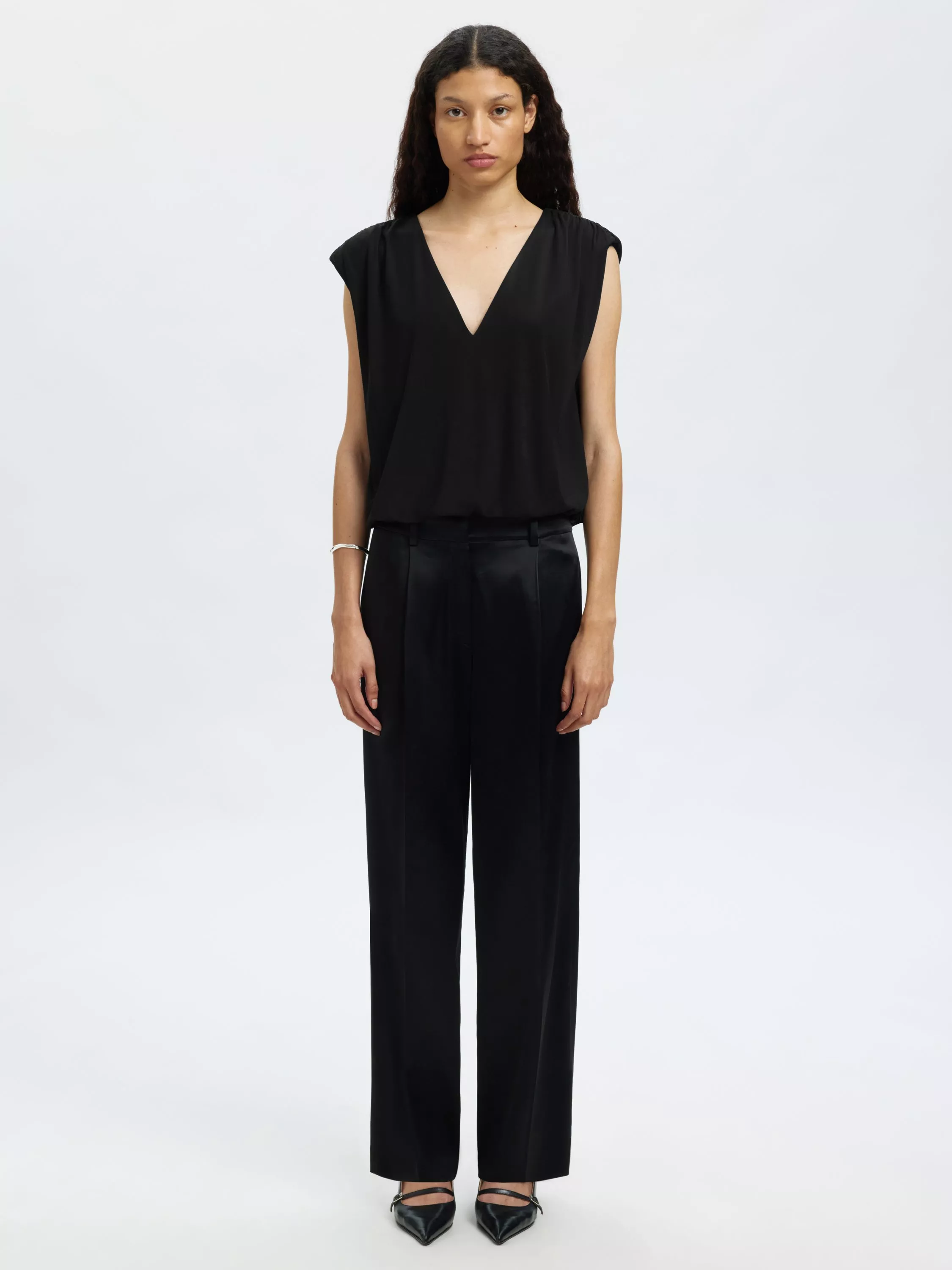 A staple vest by Selected, made from a soft viscose blend. Featuring a V-neck and short sleeves, it has a go-with-anything plain design. Built for focus, made for comfort.