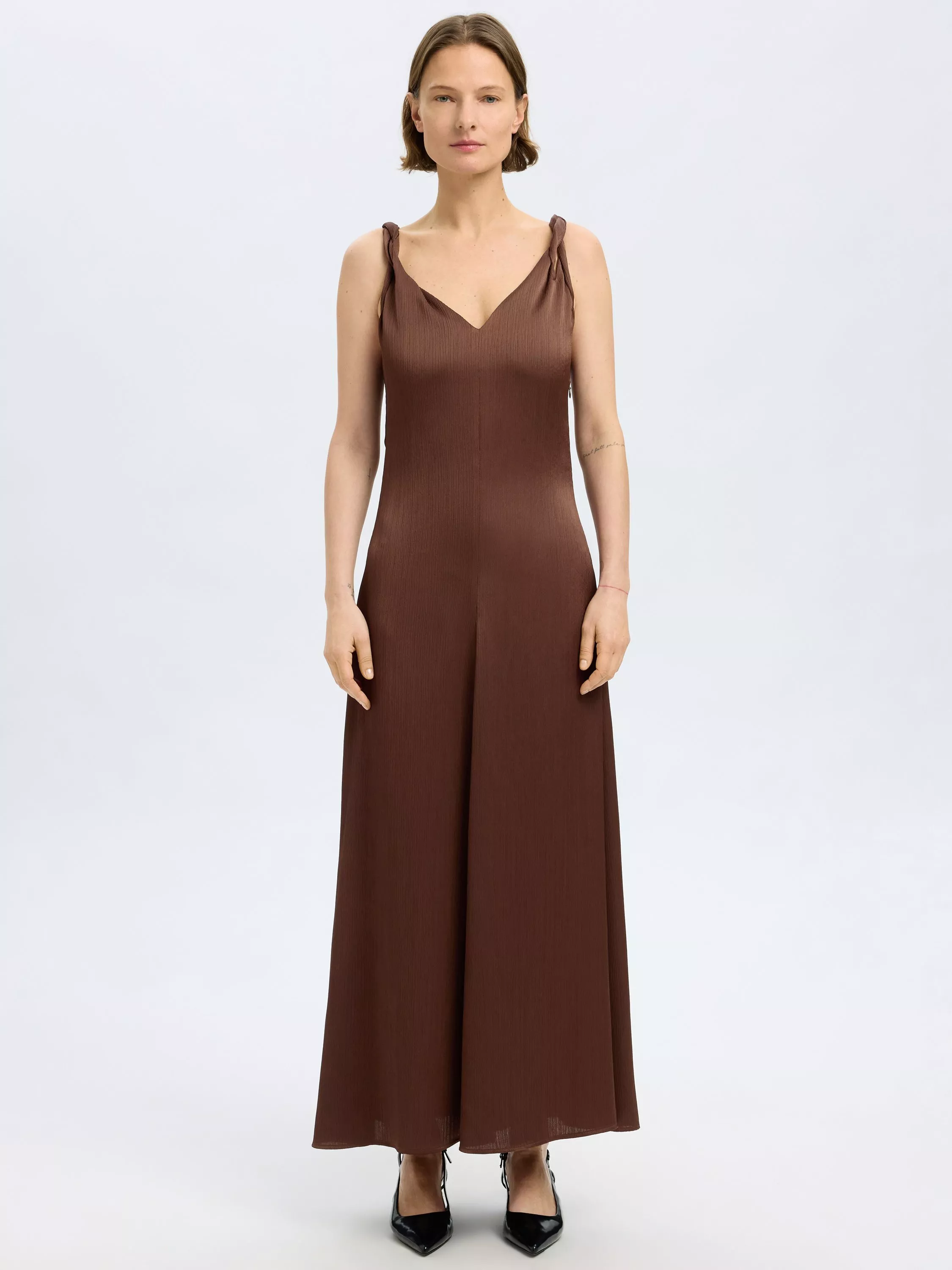Entirely flattering with its A-line shape, this maxi dress from Selected is made from a resilient fabric. With a universally flattering v-neckline, this sleeveless style is a celebration of minimalism.