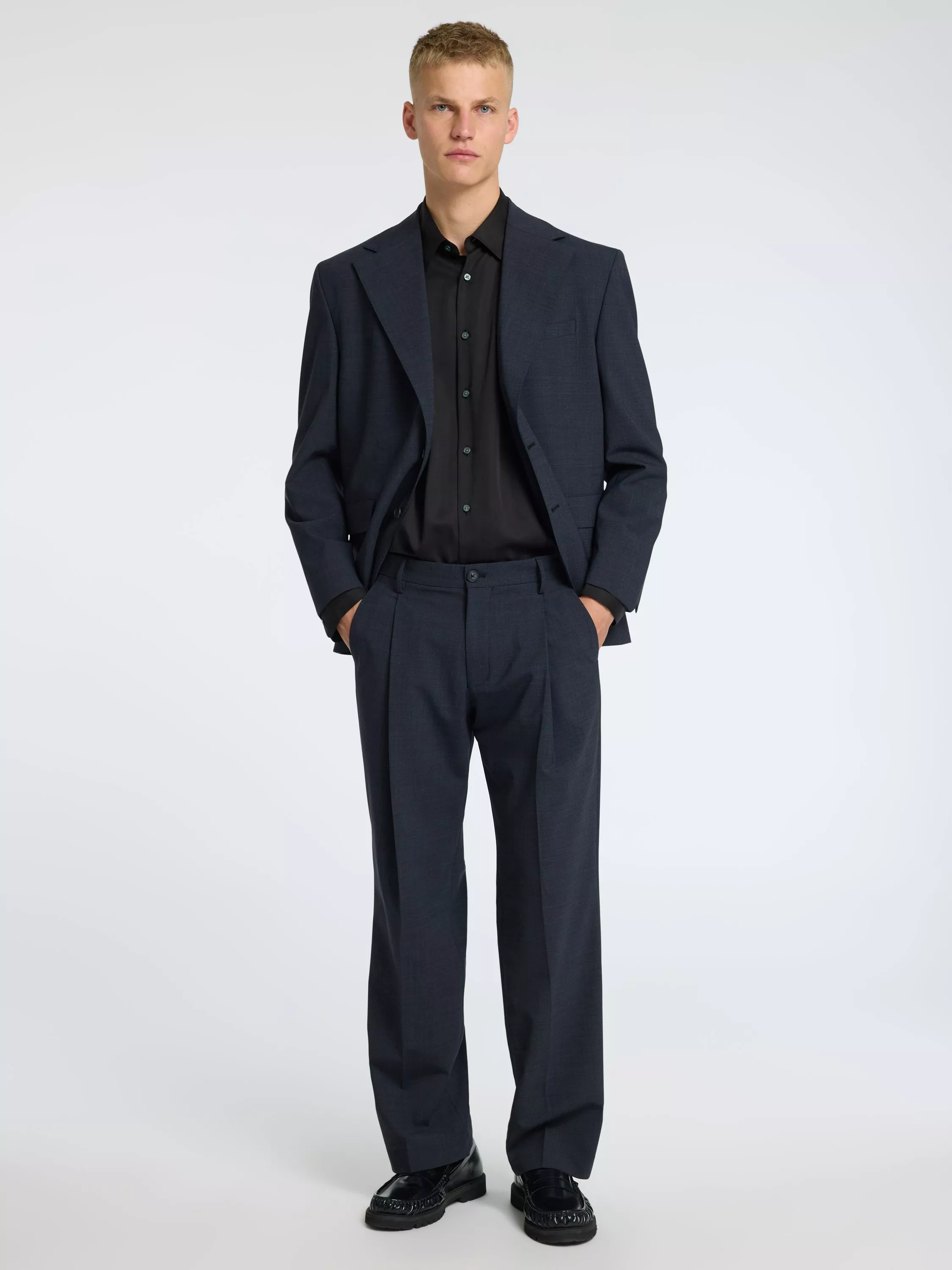 SelectedOtto Pleated Loose Fit Trousers, Dark Grey Melange