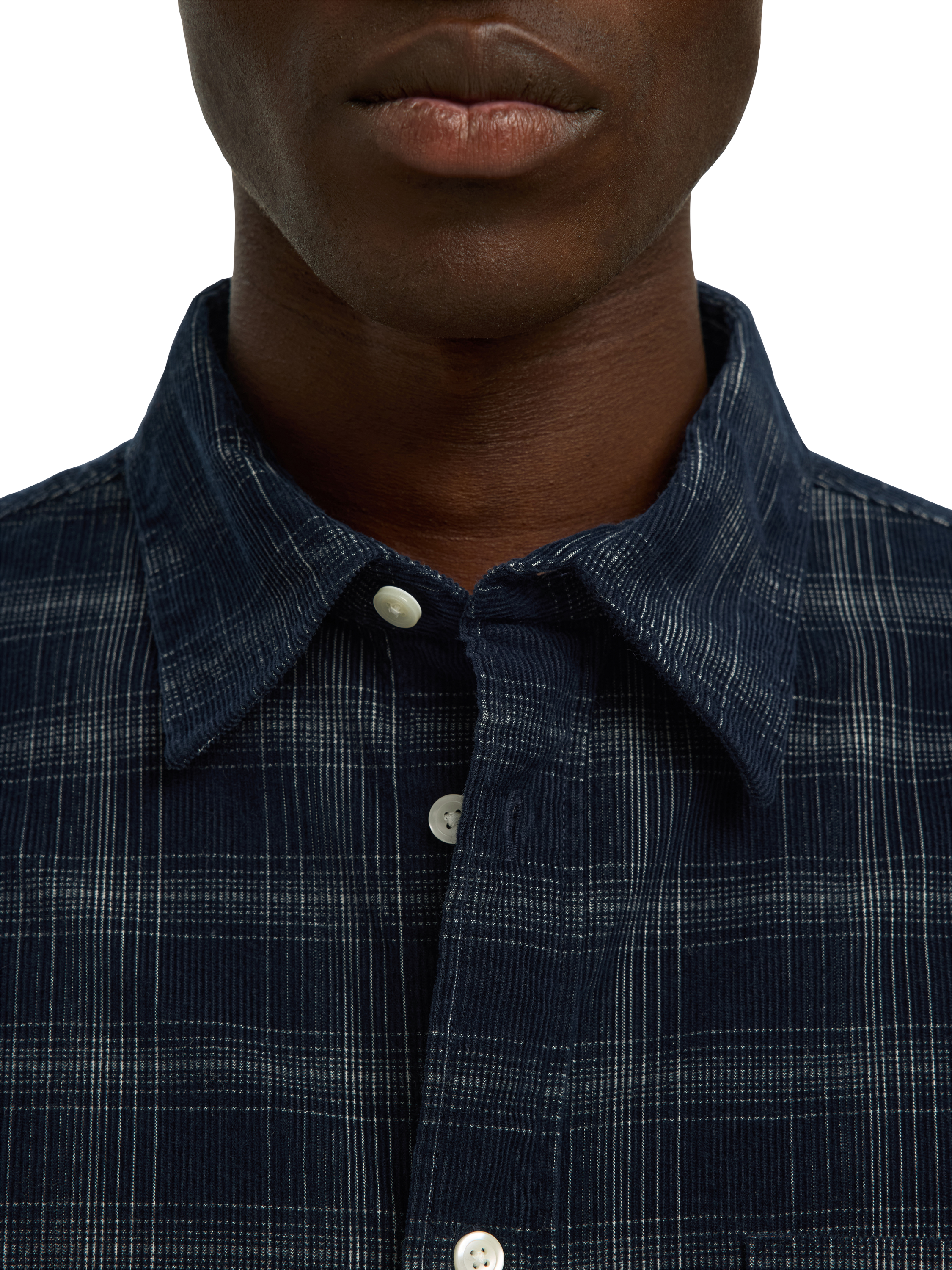 This check corduroy shirt offers a relaxed fit with a smart collar, making your day both comfortable and polished. Organic cotton brings gentle softness, while the regular cut lets you move easily from work to weekends.
